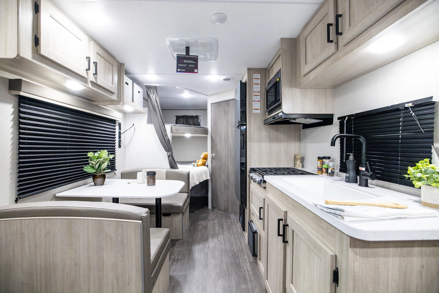The 26BH Aurora Light TT combines family-friendly sleeping with versatile living space. Bunk beds and a well-designed main area make it perfect for groups or kids, while lightweight construction ensures easy towing. Enjoy hassle-free camping, outdoor meals, and nights under the stars.