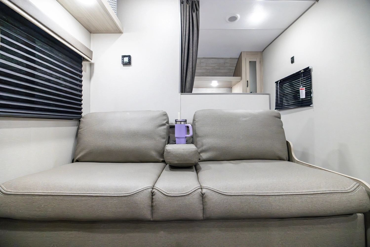 • Jiffy Sofa w/ Flip-Down Cup Holder/Arm Rest