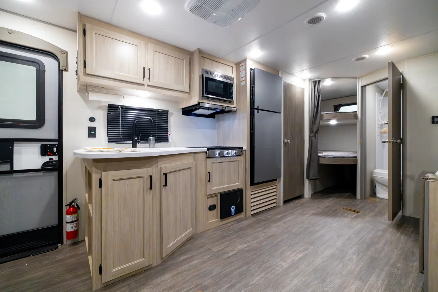 The 26BHS Aurora Light TT offers a spacious layout for families and friends. With multiple sleeping areas and efficient kitchen and bath setups, it makes every trip comfortable. Lightweight and easy to tow, it’s ready for tailgating, weekend camping, or exploring new trails.