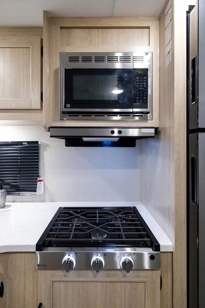 • GE Stainless 3-Burner Gas Range on Tandem Axles
