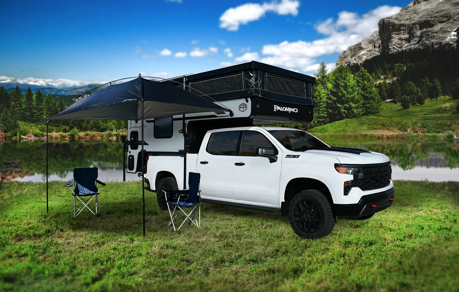 No matter the size of your truck, we have a soft-side truck camper perfect for you. Thanks to the electric lift you can easily set up your camper without hand-cranking the top up or down. And with the optional remote, it works with just a push of a button. Plus, our 55” one-piece door makes it that much easier to enter and exit the camper, compared to our competition’s 46” or 47” door. The soft-side series comes in a white or grey gel coat exterior.