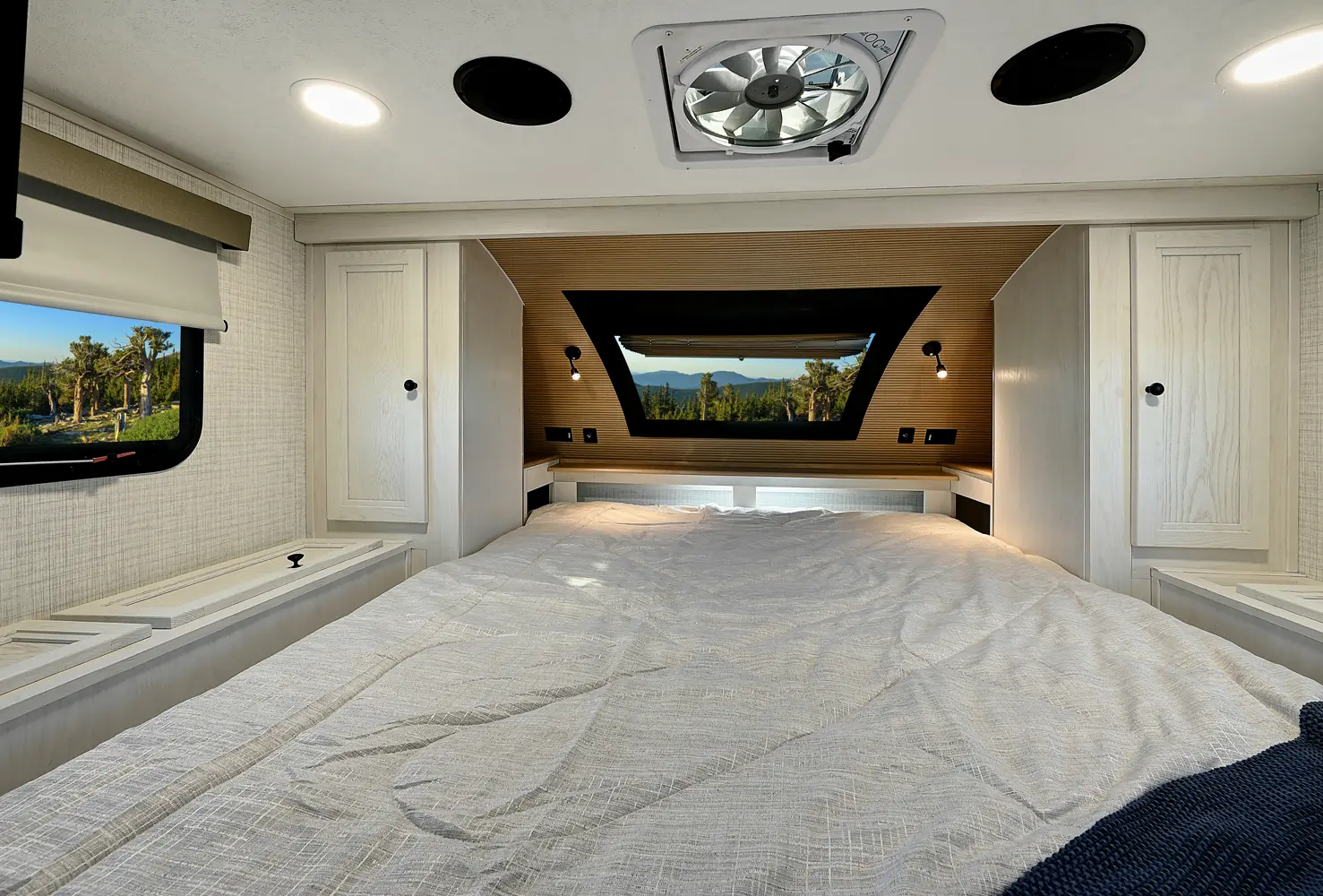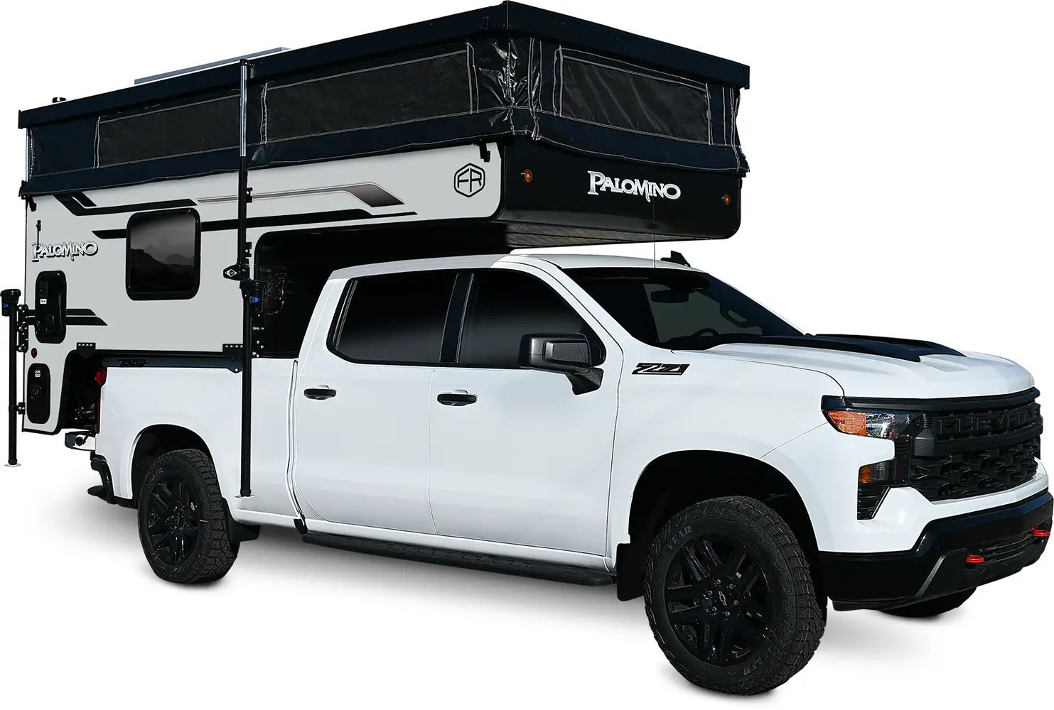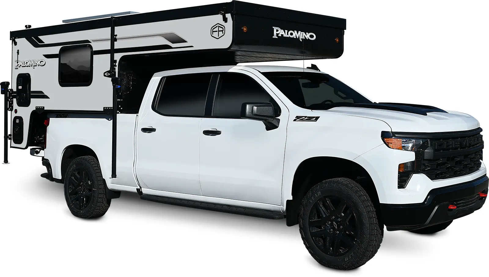 Our lightweight, hard-side truck campers are packed with great features and keep a lighter payload, thanks to the fully aluminum welded frame. We’ve redesigned the interior to provide greater cabinet storage, and upgraded frameless windows.