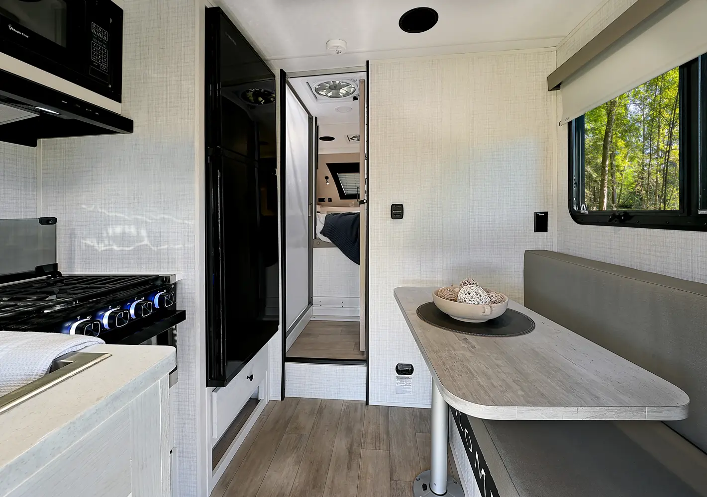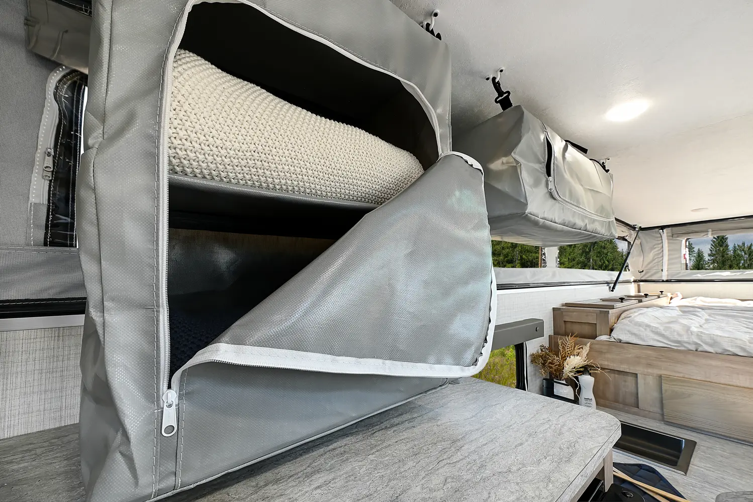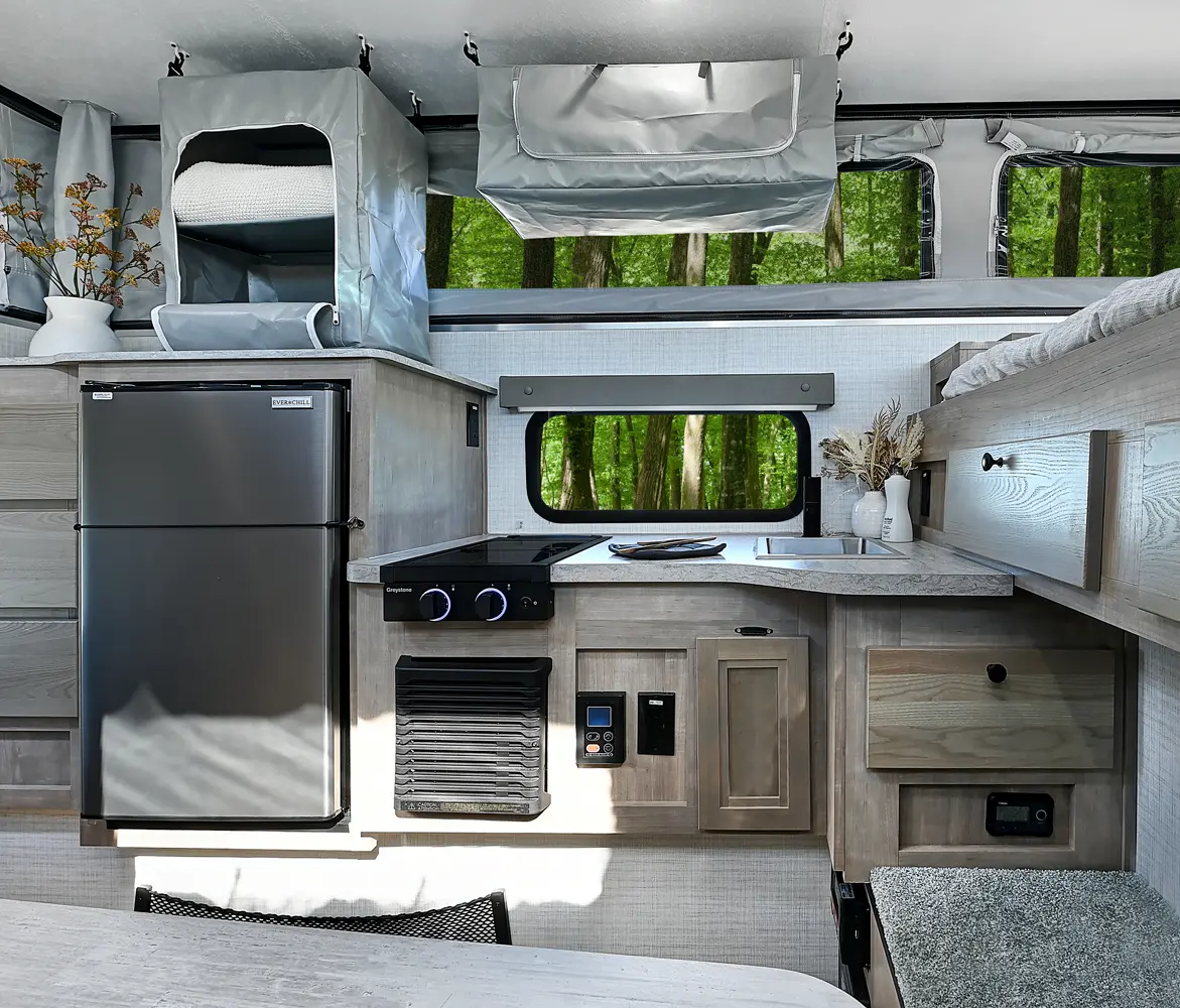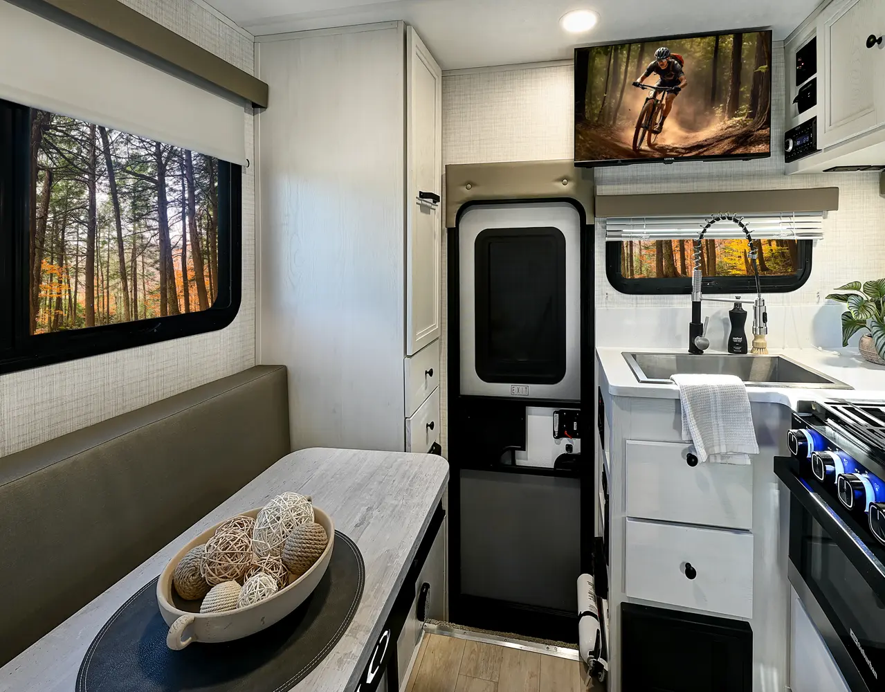 Our lightweight, hard-side truck campers are packed with great features and keep a lighter payload, thanks to the fully aluminum welded frame. We’ve redesigned the interior to provide greater cabinet storage, and upgraded frameless windows.