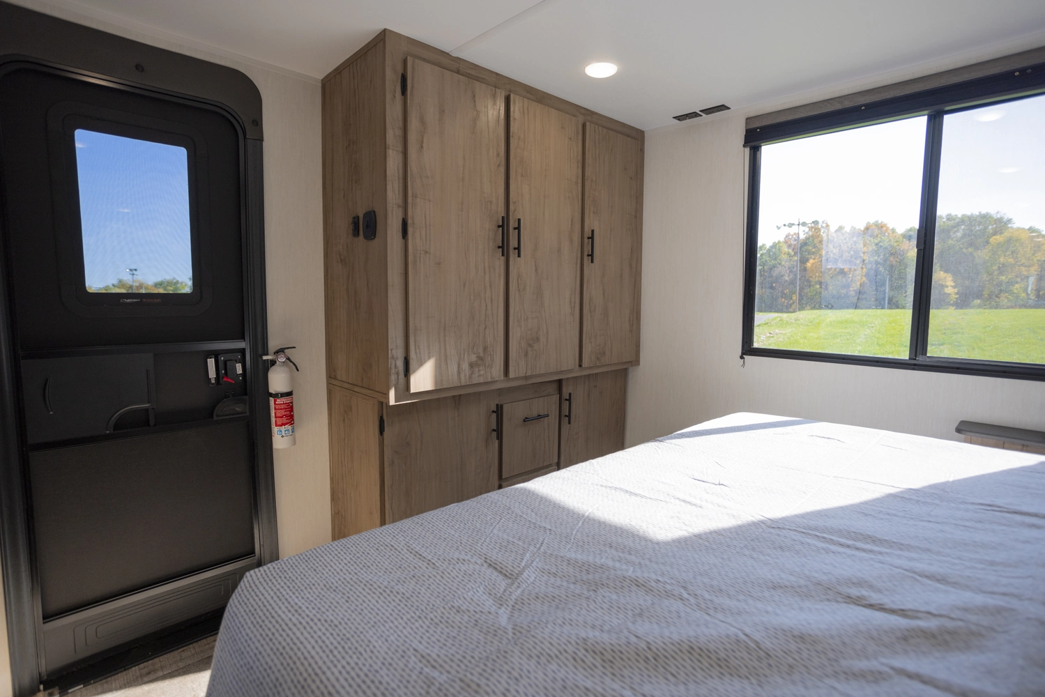 The Campsite Ultra 26BW a front kitchen floorplan that will thrill the cook among your crew with the natural light alone. Yes, those rear windows keep everything open and bright, and the hidden pantry behind the entertainment center reaffirms the fact that this front kitchen has everything your camp chef needs to store goods and prep delicious camping meals.