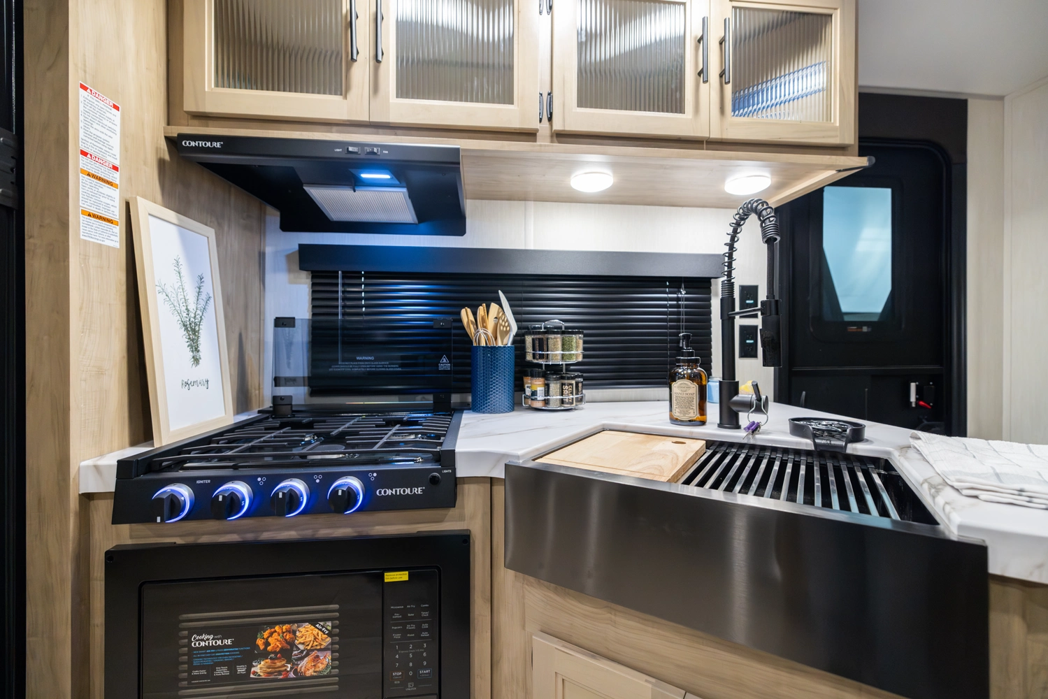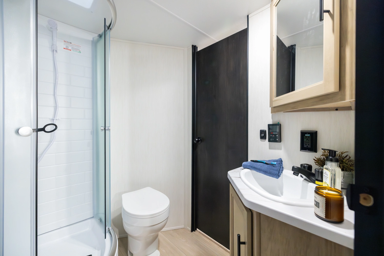 • Blackout Glass, Safety Slam, Friction Hinge Entry Door with Window and Shade Prep (N/A on LP models)