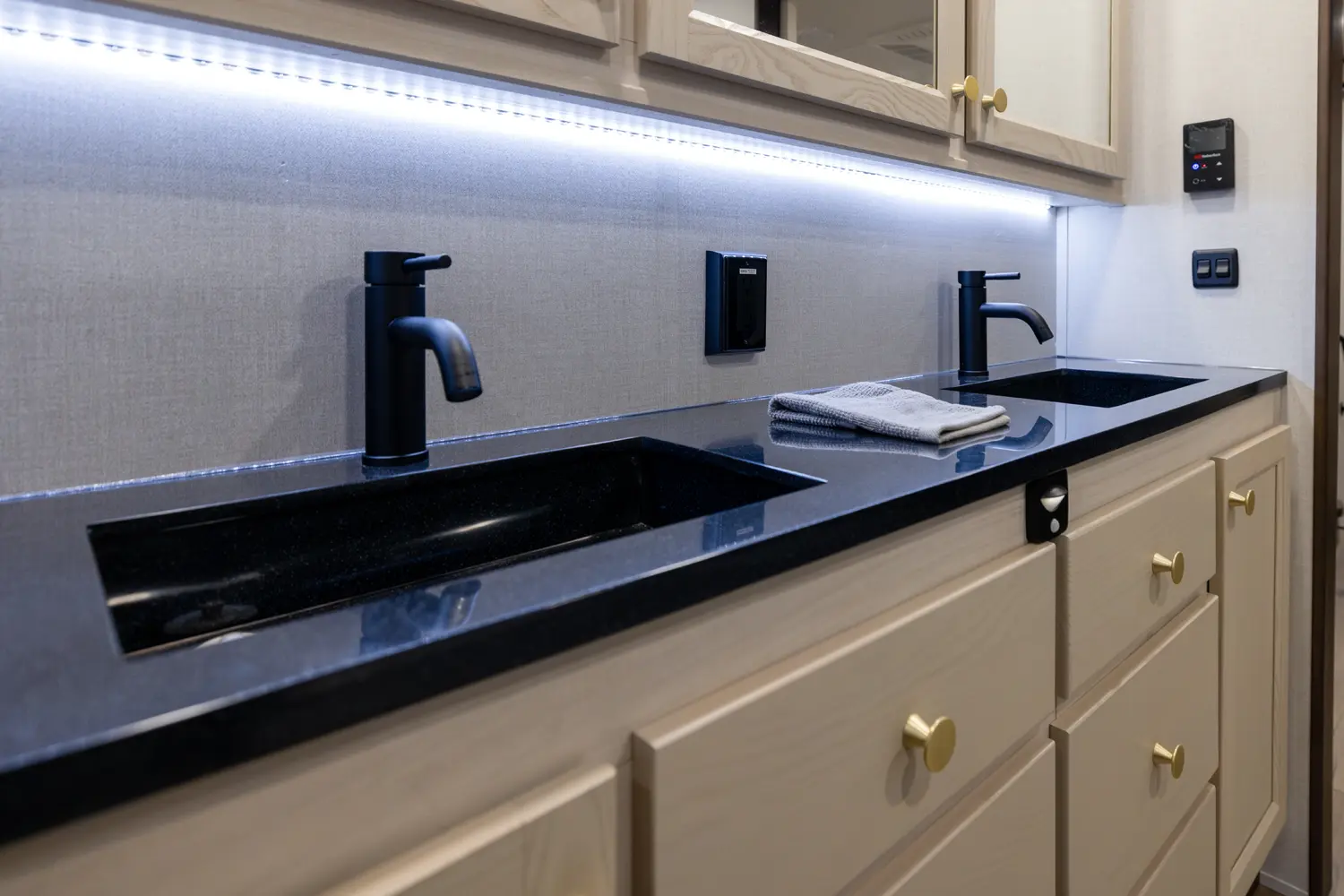 • Large Single or Double Sink Bath Vanity with Solid Surface Counter