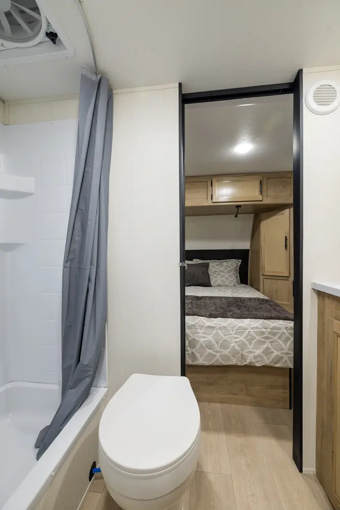 • Blackout Glass, Safety Slam, Friction Hinge Entry Door with Window and Shade Prep (N/A on LP models)