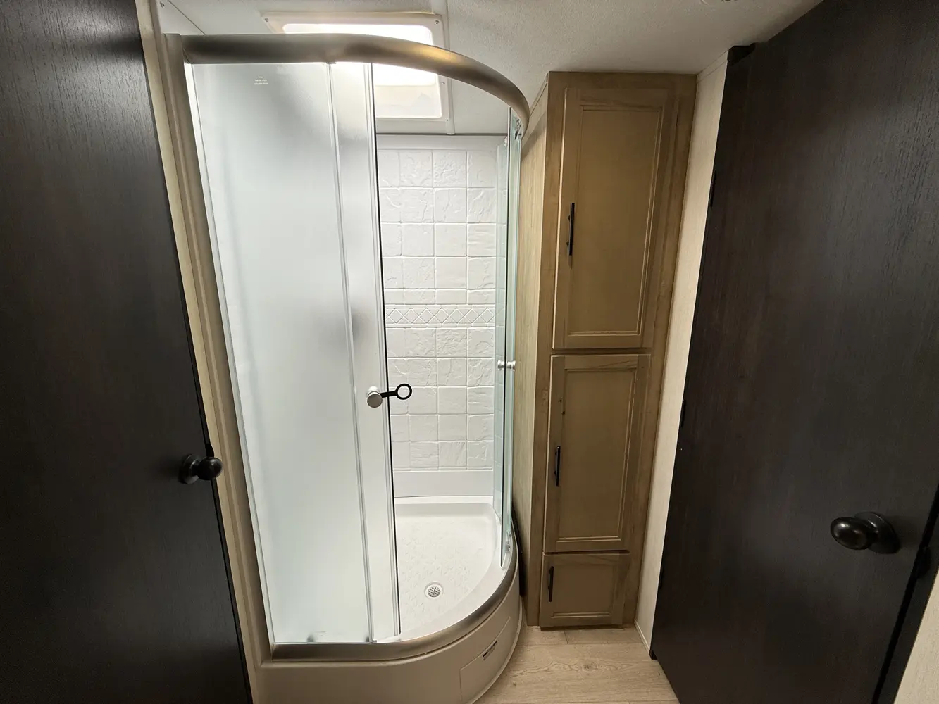 • Blackout Glass, Safety Slam, Friction Hinge Entry Door with Window and Shade Prep (N/A on LP models)