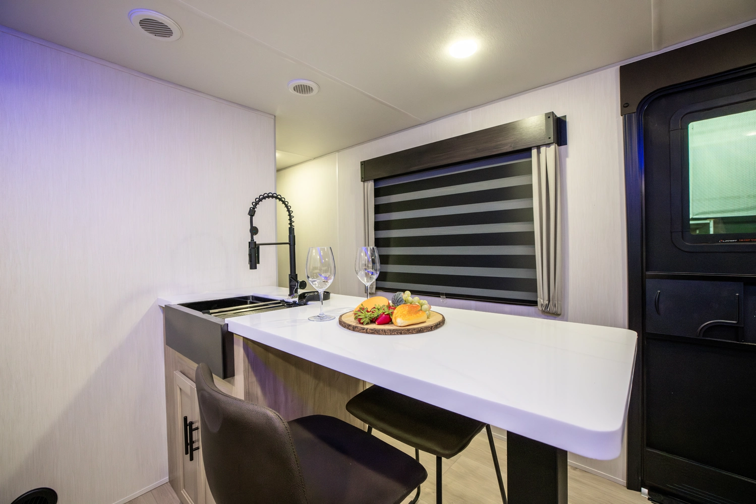 The Black Label version of the Grey Wolf 27LH is an intelligently designed entry level travel trailer designed for modern camping. Notable Black Label upgrades include fiberglass gel coated side walls, frameless windows, thermos-foil arctic insulation and solid surface countertops.