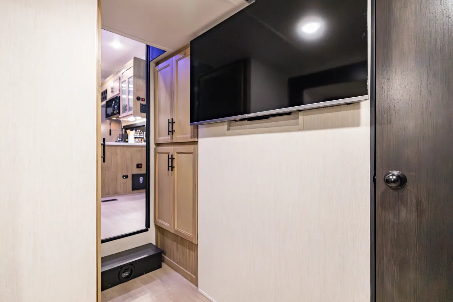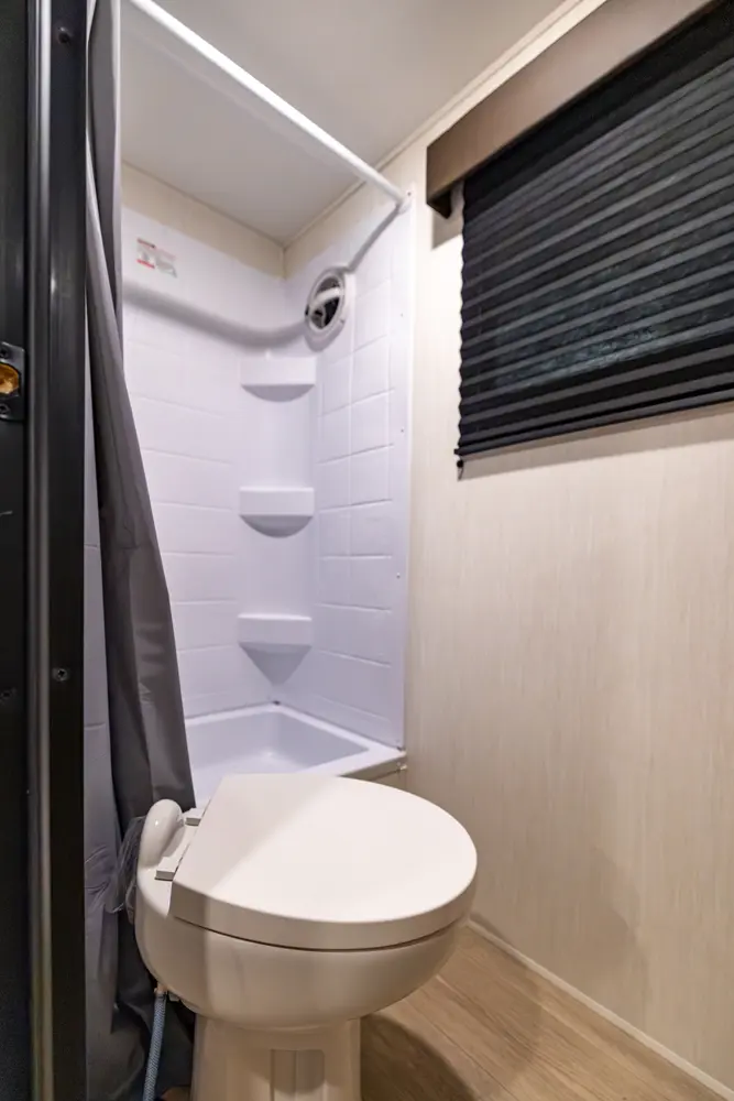 • Blackout Glass, Safety Slam, Friction Hinge Entry Door with Window and Shade Prep (N/A on LP models)