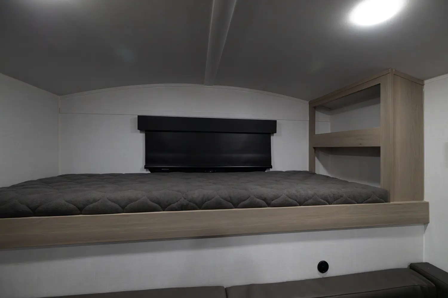 The 15RDG Offers a huge 80" by 54" U-shaped dinette that converts to a bed. A flip-up bunk that doubles as shelf storage when not in use. A thoughtful convection microwave, sink & stove top inside as well as a massive outdoor rear kitchen. With the convenience of a wet bath this model delivers comfort, versatility and fun wherever the road takes you.