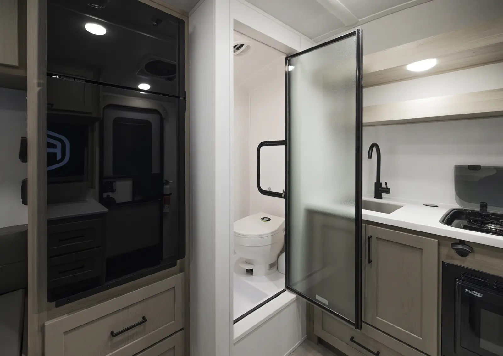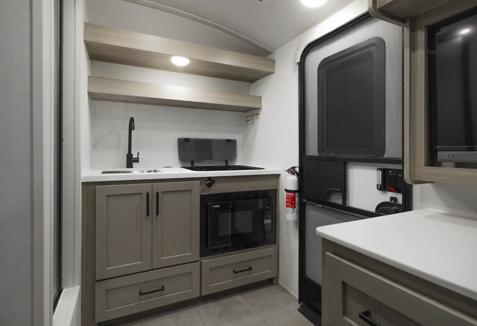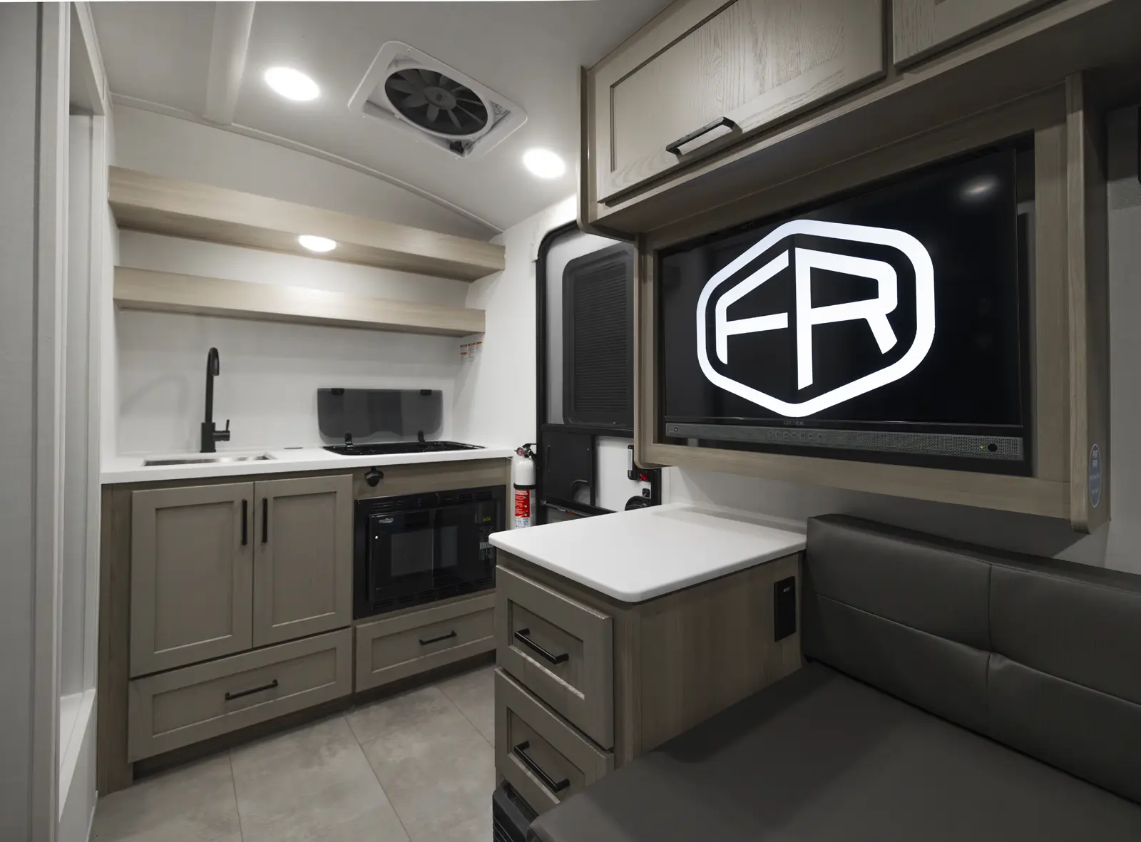The Flagstaff E-Pro E15TB is our smallest walkable travel trailer in our lineup. We like to call it the Swiss Army Knife of RVs. With two twin beds that make it into a king bed, full bathroom, TV, awning and all the great things this camper comes with, you just can't go wrong. Most tow vehicles can handle this small camper without even breaking a sweat. If you need a small camper with a king bed this is your winning ticket.