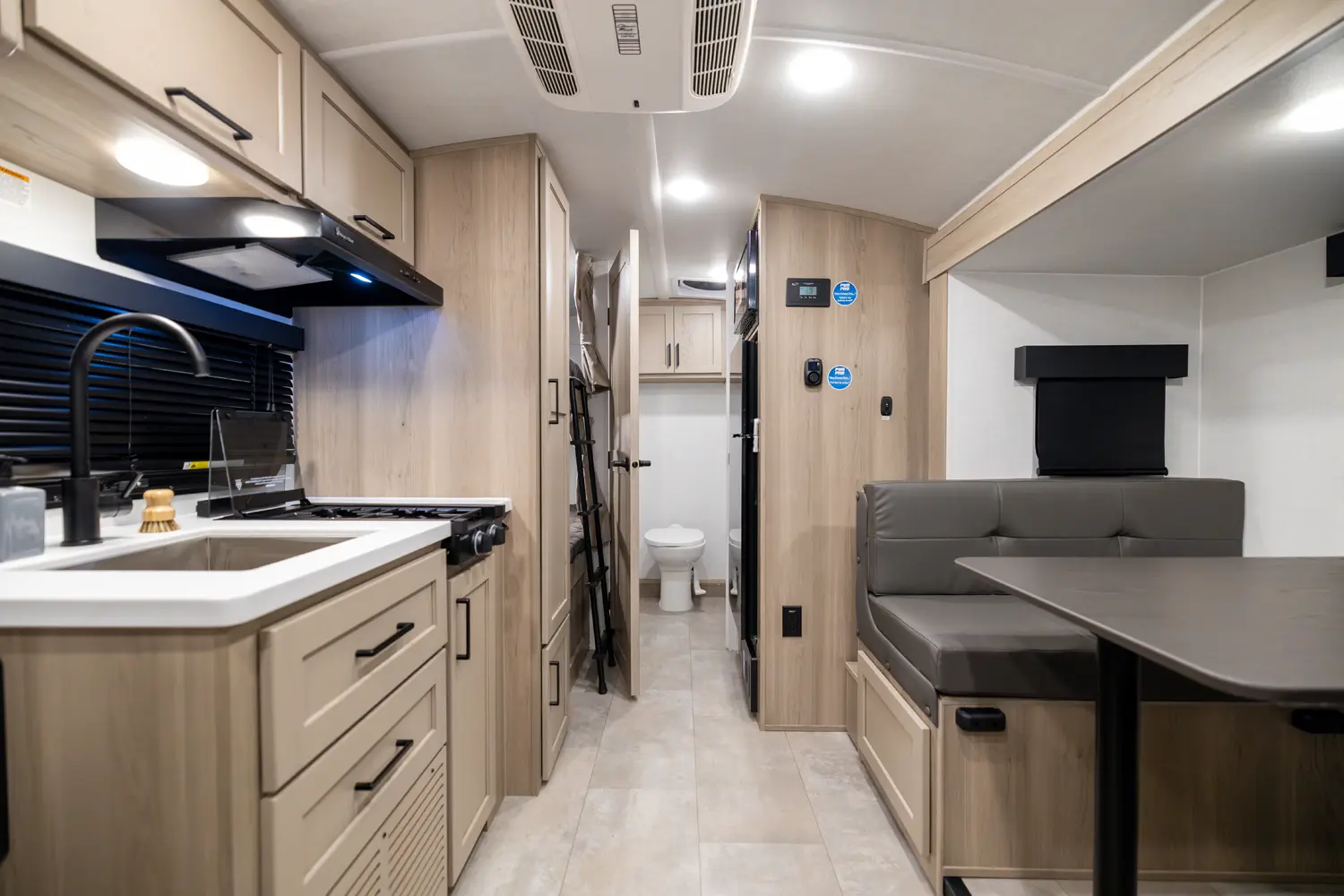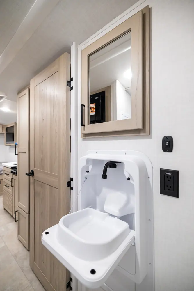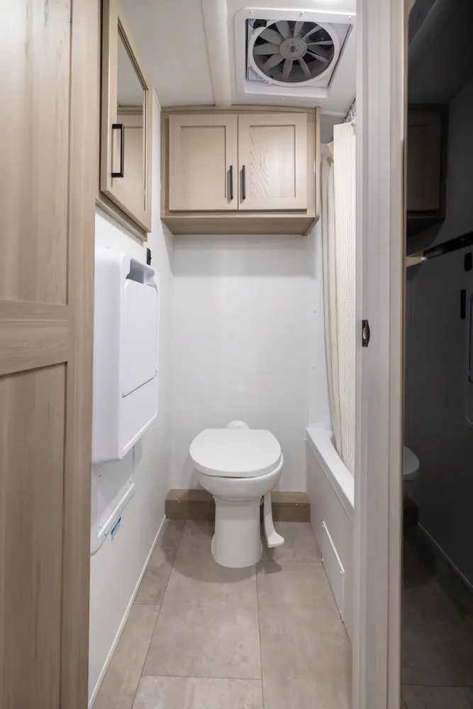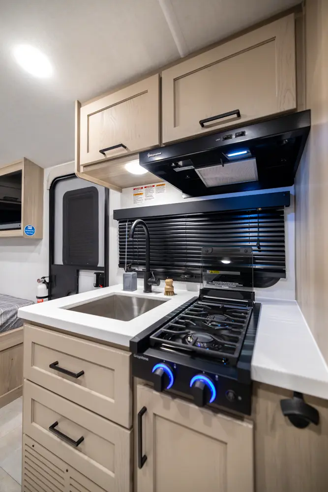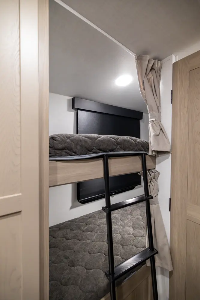 The E-Pro 20BH is a lightweight bunkhouse designed for adventure. At just over 21 feet long, it’s easy to tow while still offering sleeping space for the whole family. It features rear bunks and a versatile dinette. The functional kitchen, modern interior, and standard off grid features like 200-Watt solar paired with an 1800-Watt inverter makes the 20BH a perfect option for campers you want comfort capability and freedom to explore.
