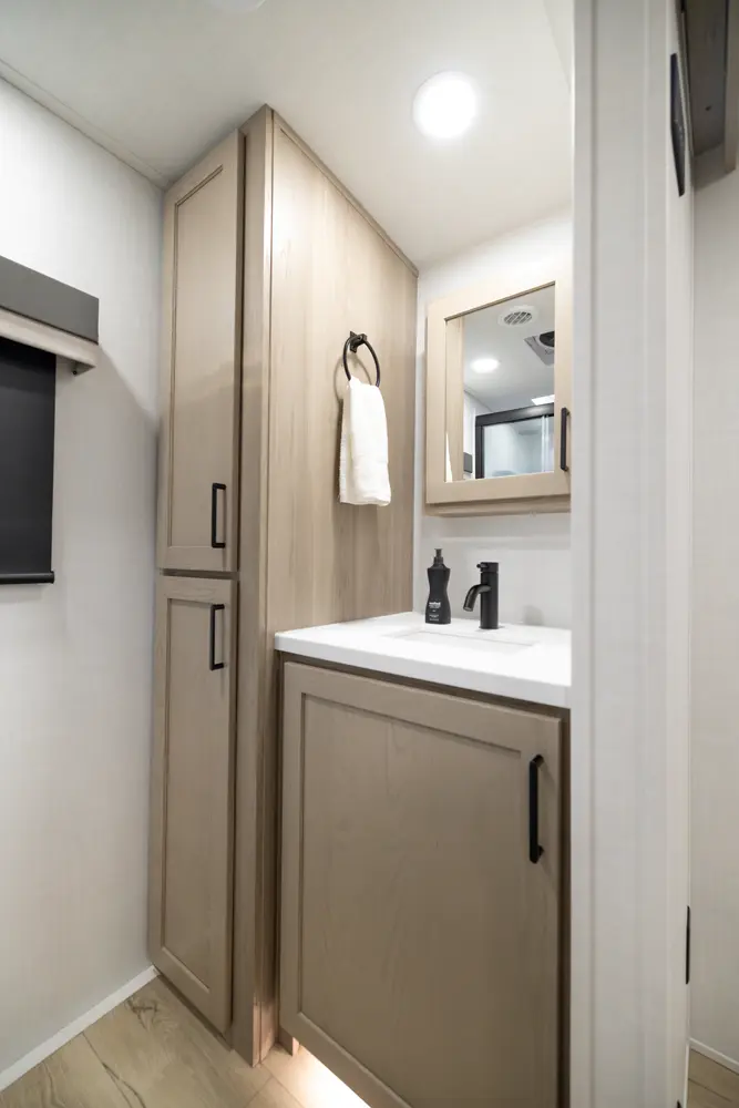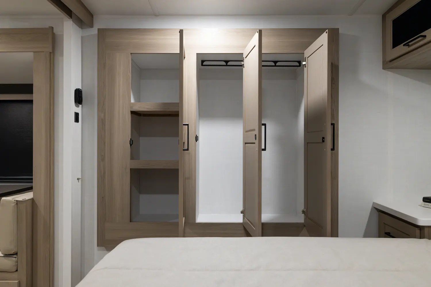 • Platinum Package: Auto Leveling, Frameless Windows, 1800W Inverter, MORryde Strut Assist Entry Step, Dual 30 LP Tanks