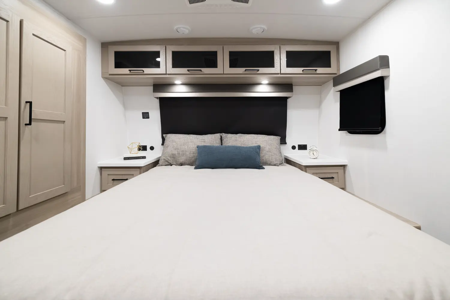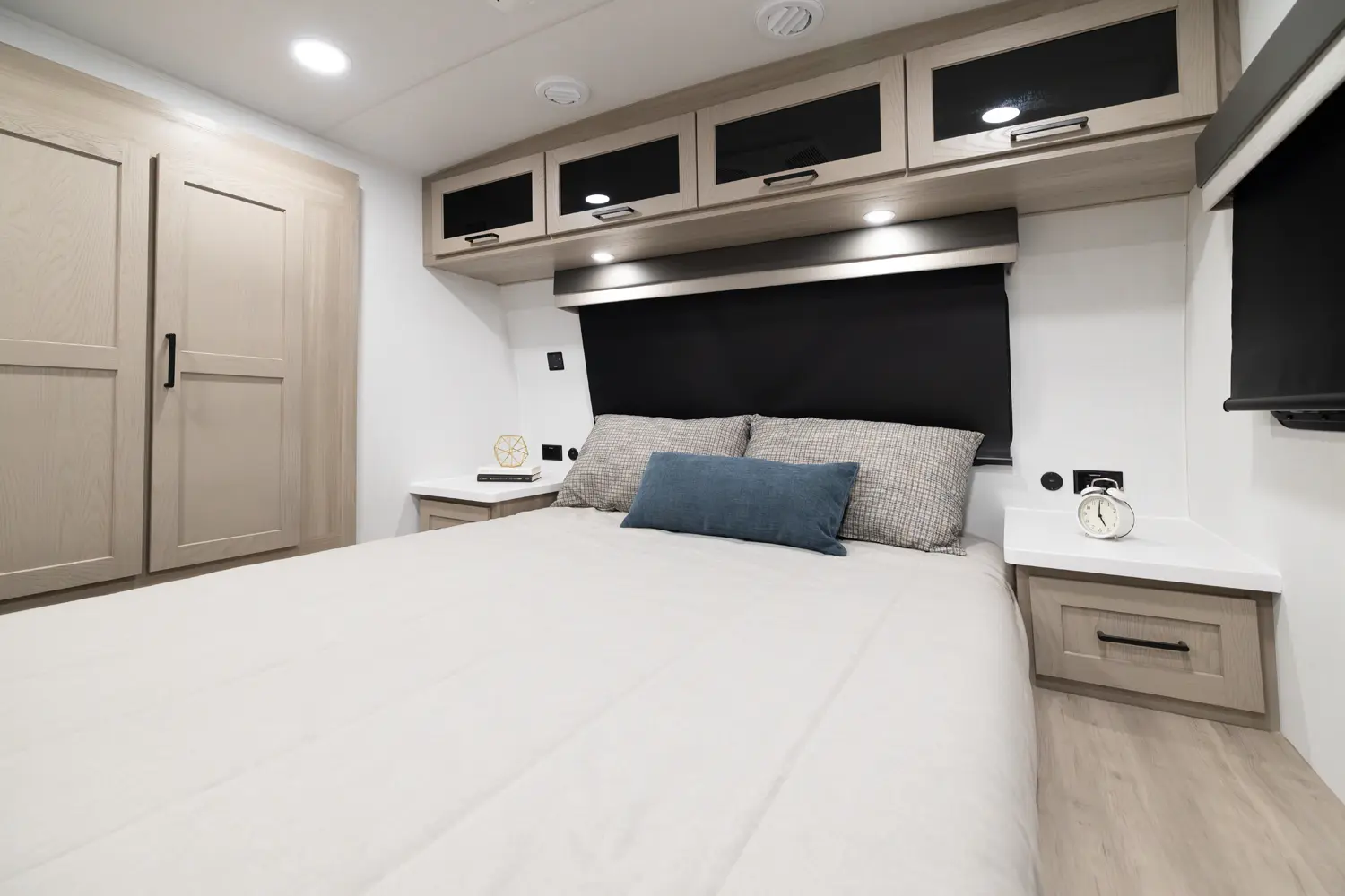 • Platinum Package: Auto Leveling, Frameless Windows, 1800W Inverter, MORryde Strut Assist Entry Step, Dual 30 LP Tanks