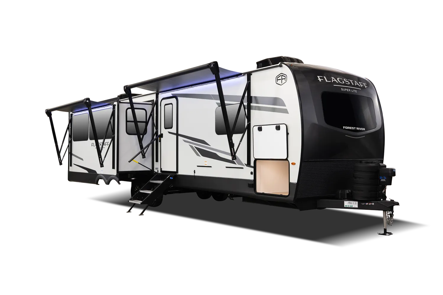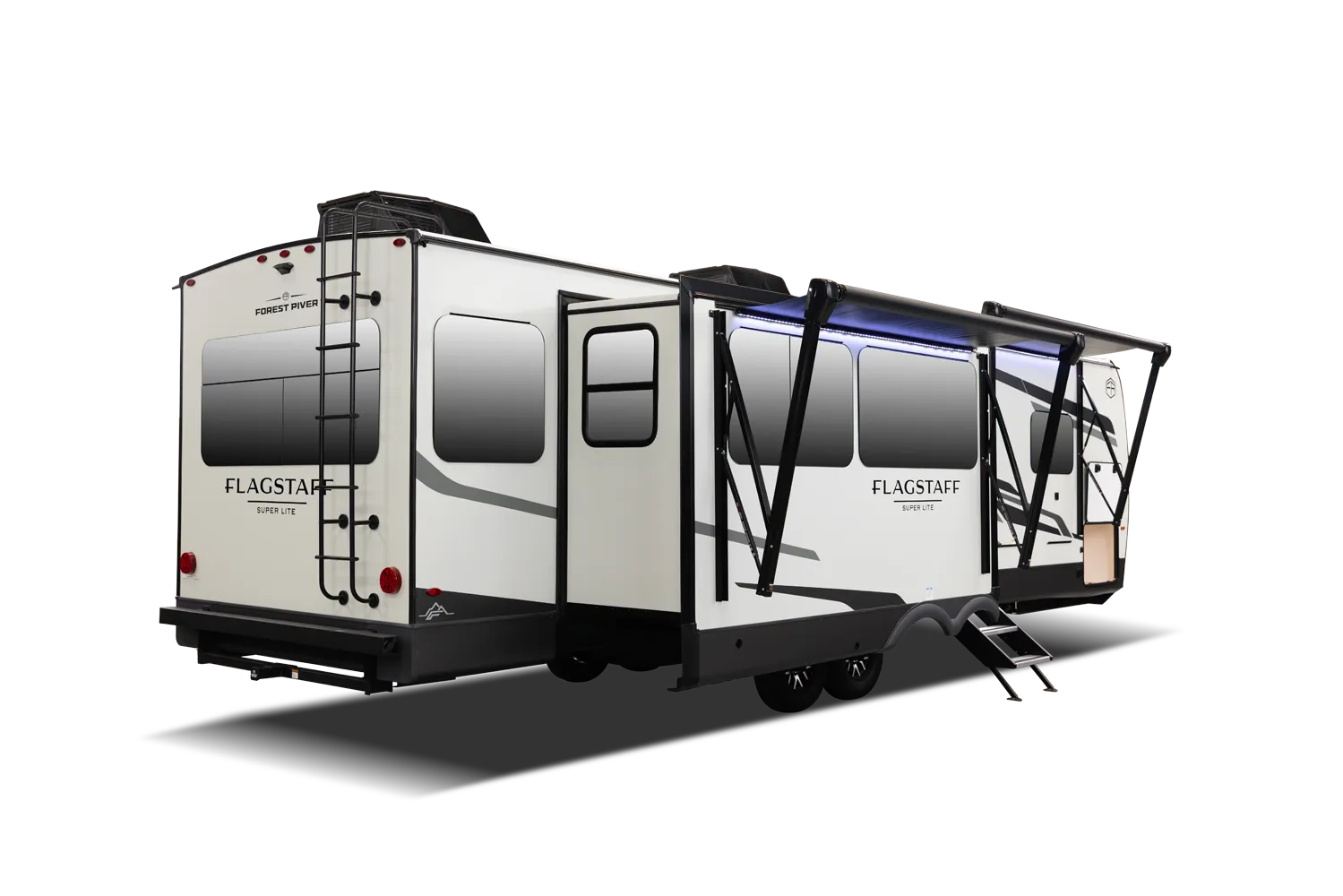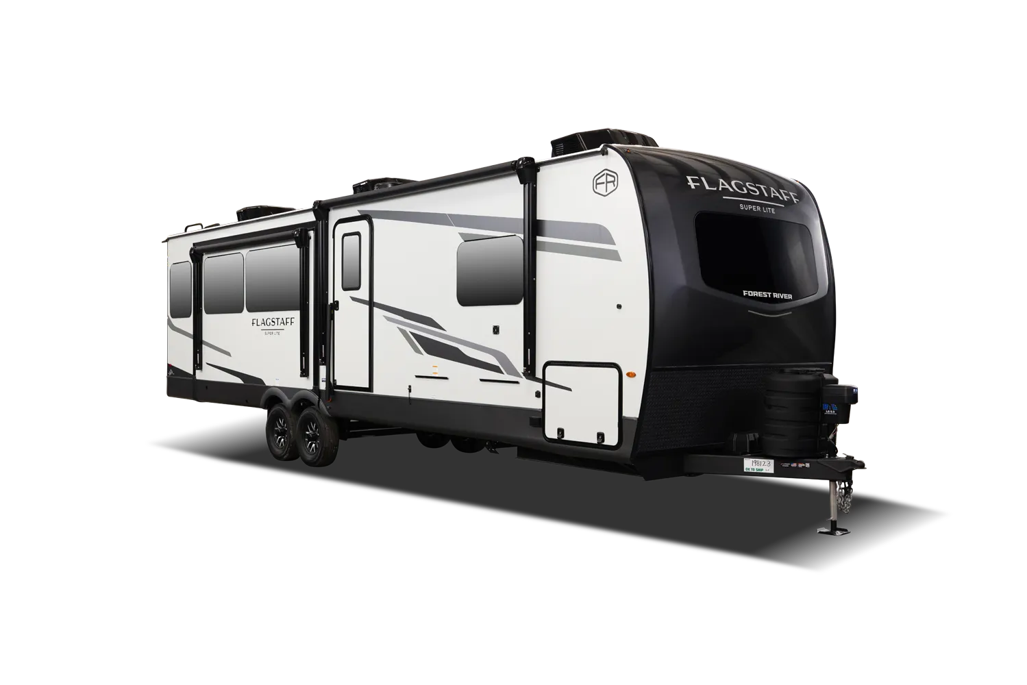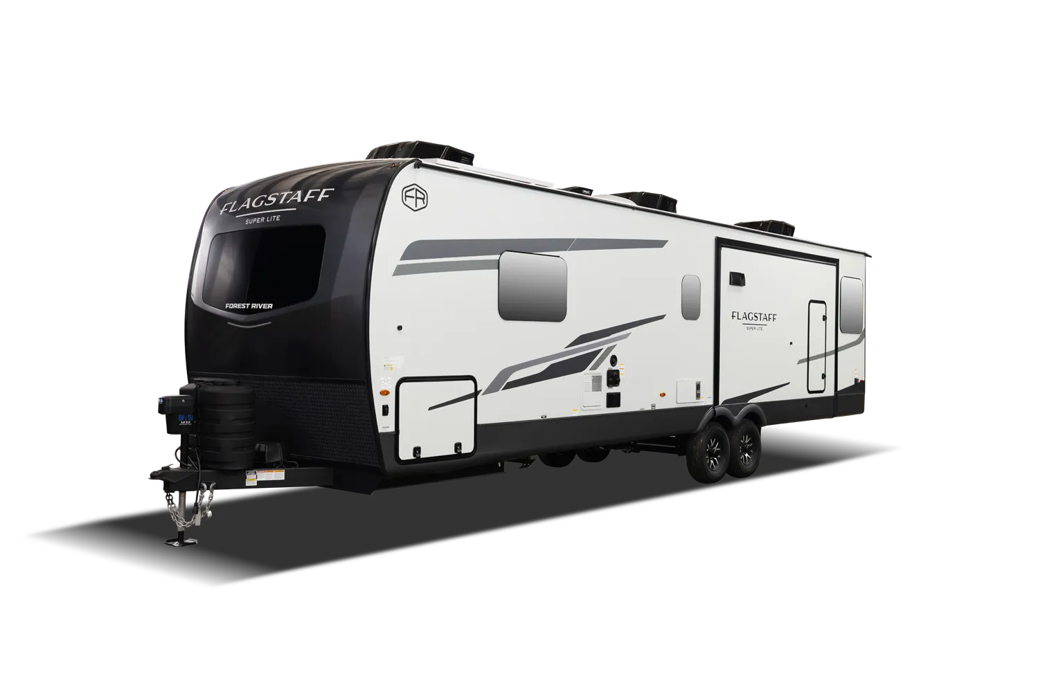 The Flagstaff 29RLKS Super Lite delivers a standout layout with a front bedroom featuring a true queen bed and abundant comfort. The large bathroom boasts a rectangular shower and linen storage for convenience on every trip. The massive living area shines with a TV, fireplace, 78" hide a bed, 68" theater seating, and a 44" dinette, creating a perfect space for relaxing and entertaining. The kitchen island adds extra prep space and storage, rounding out this Super Lite’s thoughtful design.