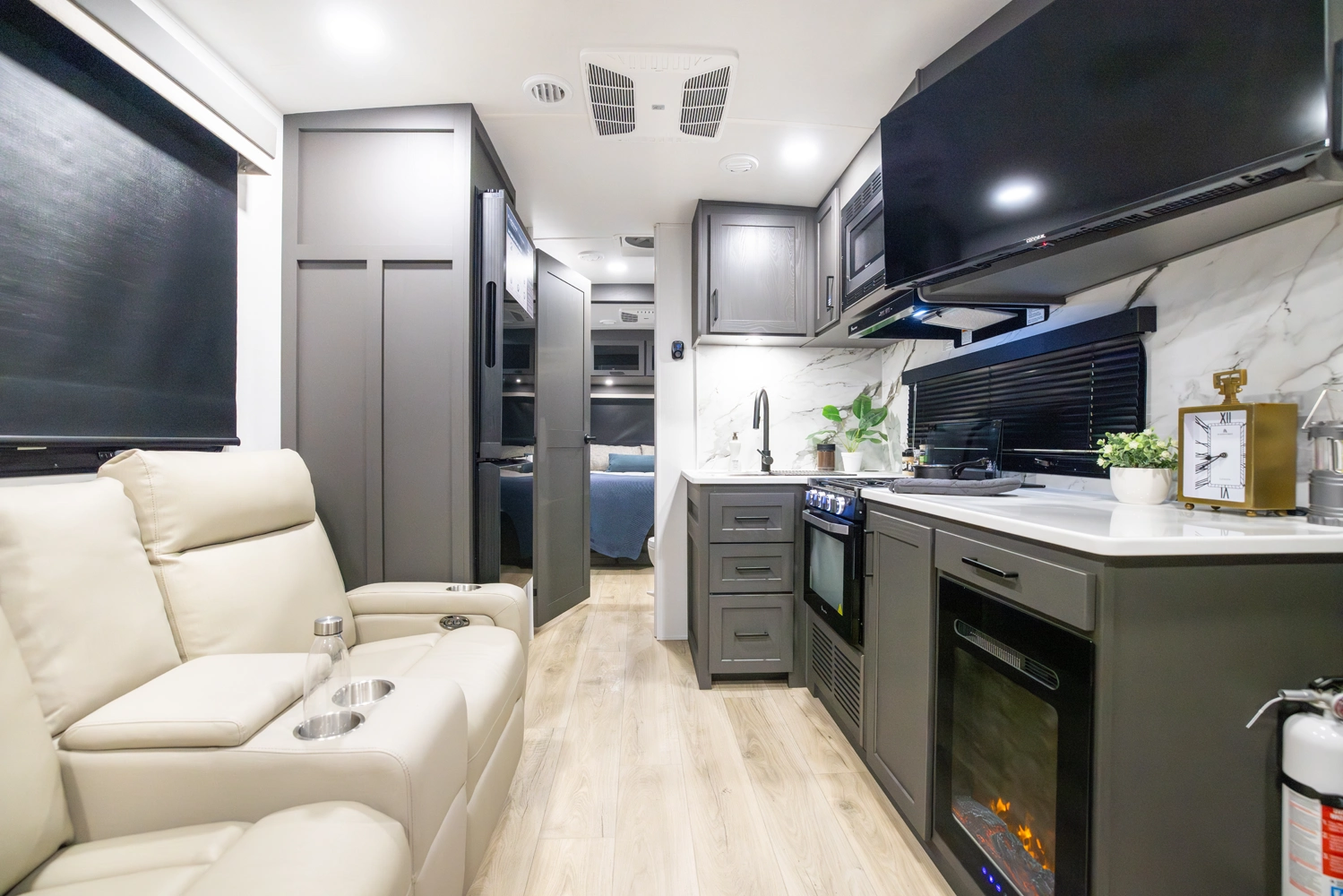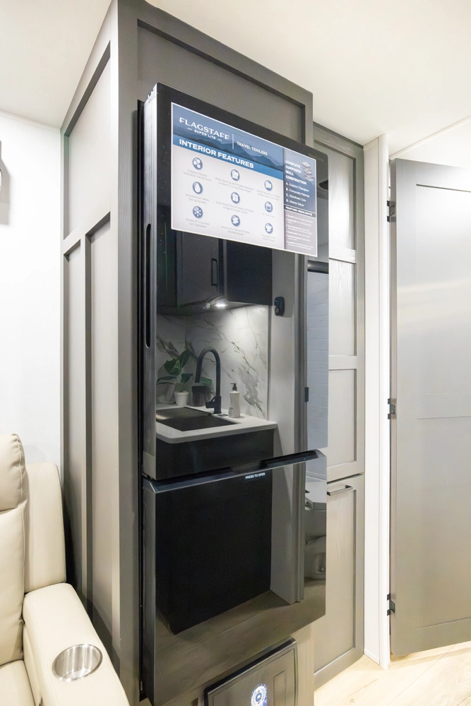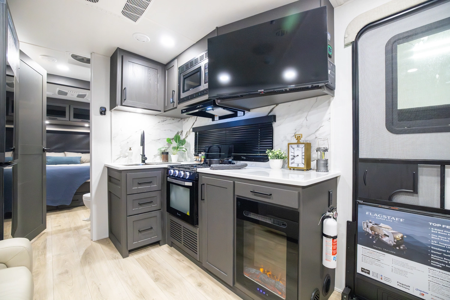 The Flagstaff 30RDT is another exciting addition to our traveler series. No slides-No headaches. This floorplan is designed for maximum campsite accessibility and quick, hassle-free setup. With no slides, you can park and relax in minutes, making it perfect for tighter sights and off grid adventures. Inside, enjoy a large functional kitchen, comfortable living space, private bedroom, and versatile sleeping options. Simple, efficient, and adventure-ready the 30RDT keeps travel easy & enjoyable.