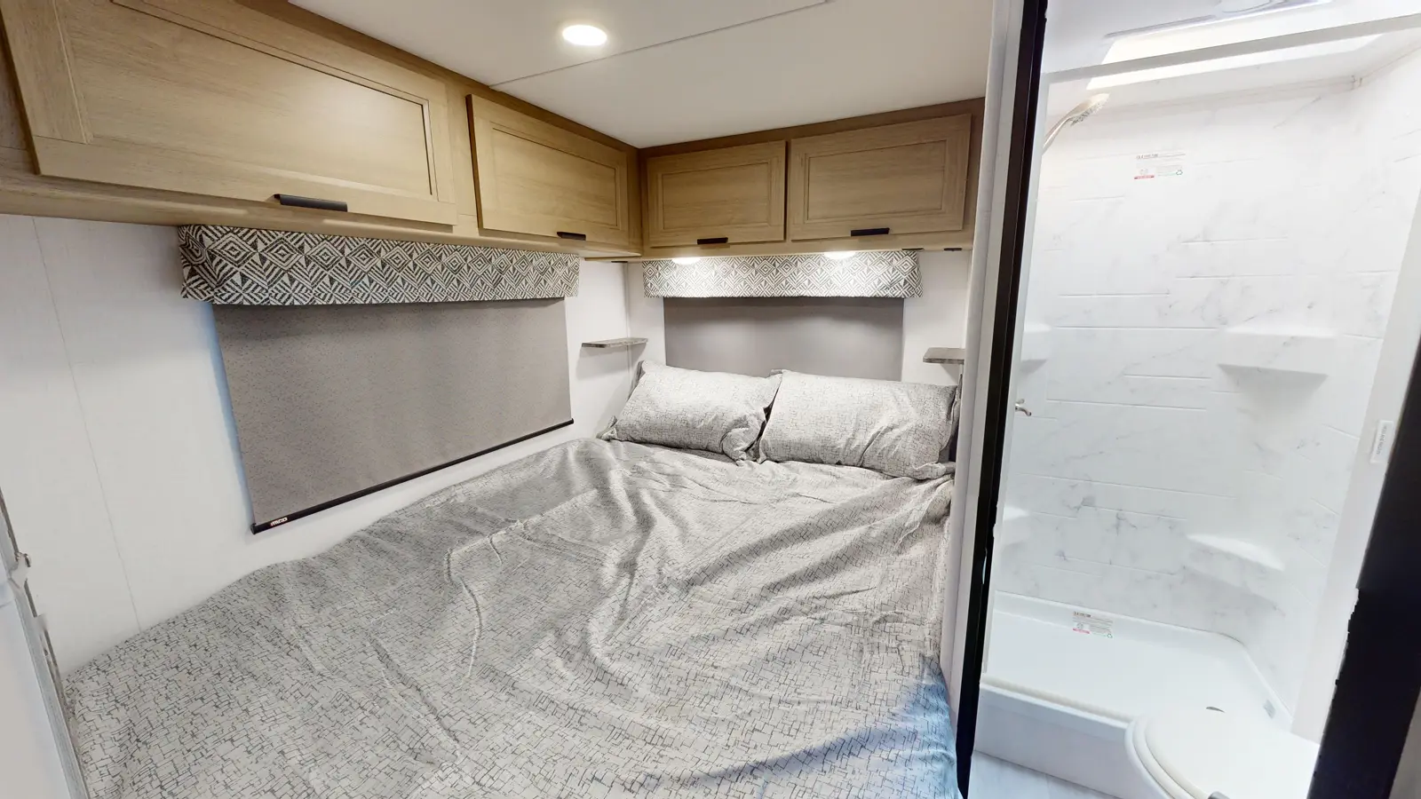 The Forester 2351LE provides a queen-size cab-over bunk for sleeping space or storage, plus a rear queen bedroom. The U-dinette provides additional sleeping space. The kitchen offers a 10.7 cu. ft. 12V refrigerator, a convection microwave, a recessed three-burner range, soft touch self-closing drawer guides and a cordless 12V charging plate. The private bathroom gives you a place to get cleaned up, and the sink is just outside the door. This model is available on a Ford or Chevrolet chassis.