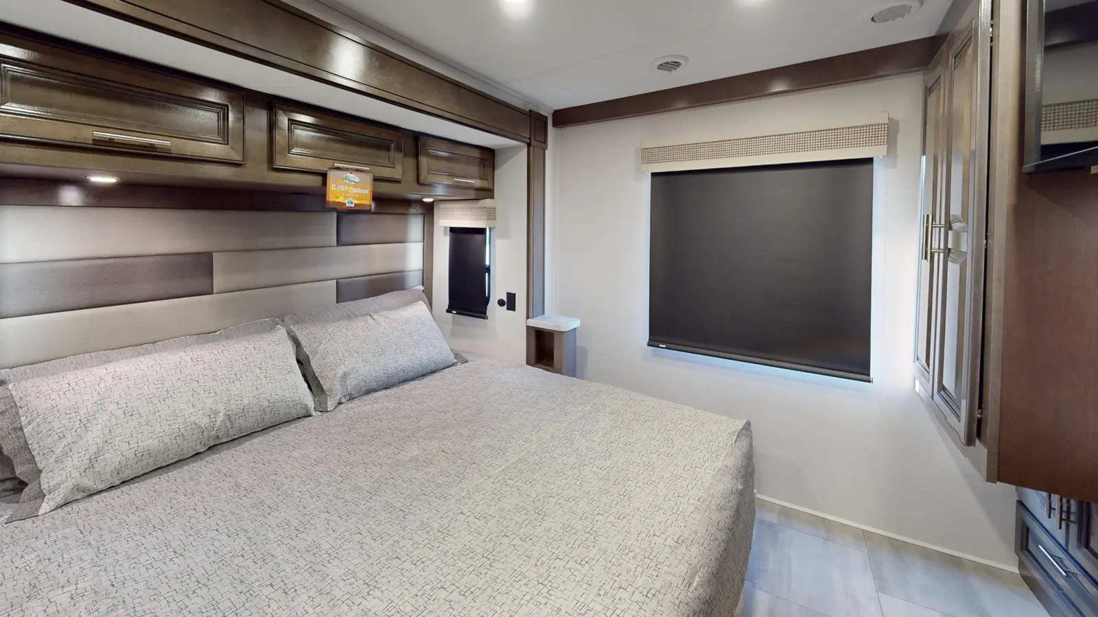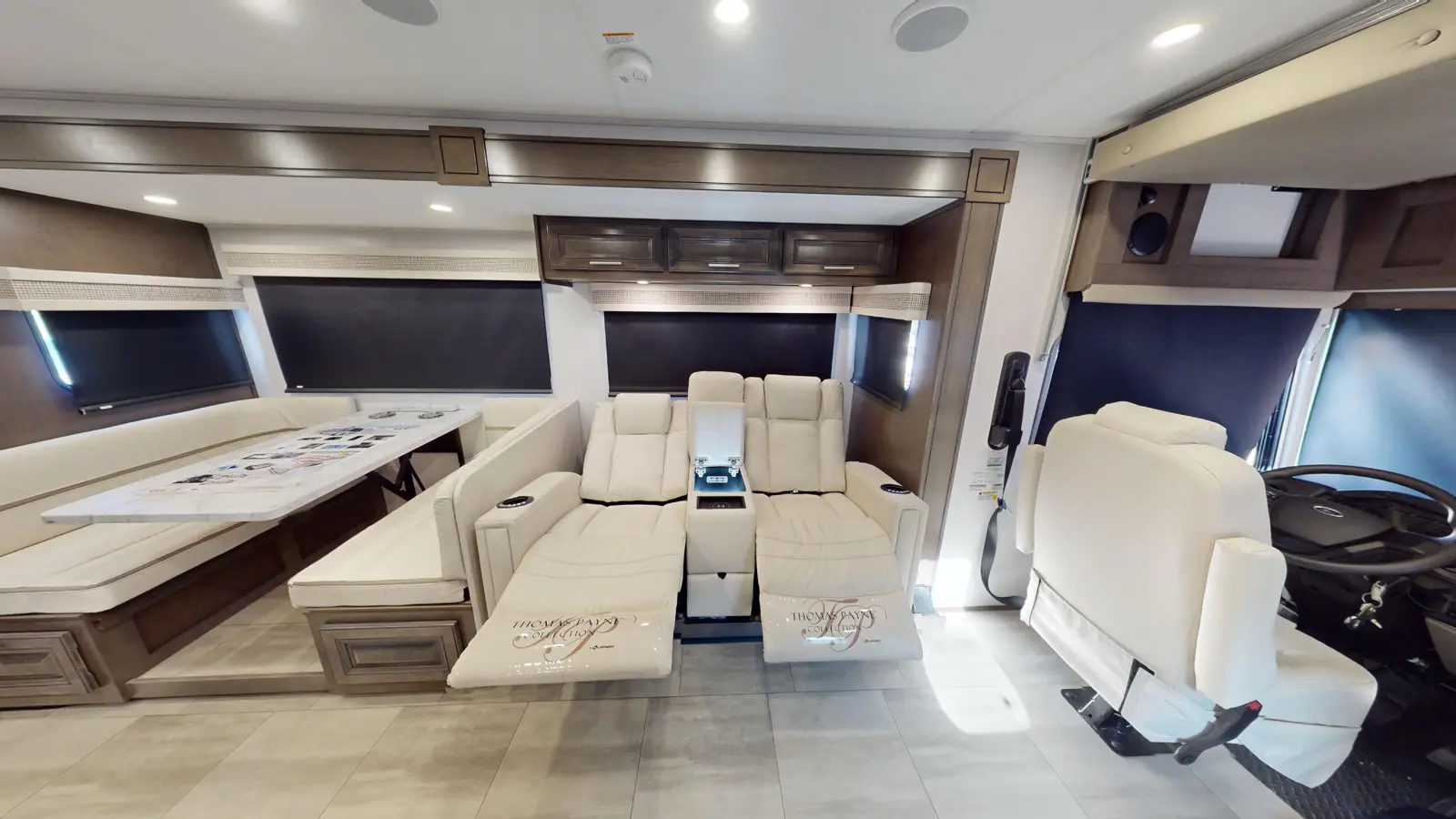 Choose from two thoughtfully designed floorplans, each paired with two elegant décor options, allowing you to tailor your motorhome to your unique style. Key standard features include: Automatic hydraulic leveling jacks for effortless setup; Color side and rear cameras for enhanced visibility and safety; LED TVs in the bedroom and main living area for entertainment on the road; Custom countertops and a premium Sony dash entertainment system with AM/FM, Bluetooth, and USB connectivity.
