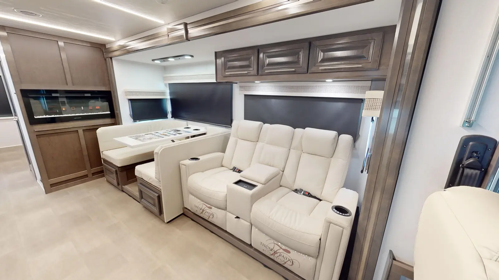 Our Georgetown 31X7 by Forest River is perfect for travelers looking for a compact and easy to drive motorhome coming in at 33ft 11in. The bedroom makes no sacrifices with a king size bed slide, washer/dryer prep and lots of wardrobe space. You also still get a full bathroom with the shower split making it convenient for your partner to shower while you get ready by the sink. There's also plenty of seating up front for guests and the dinette converts into a bed for occasional guests!