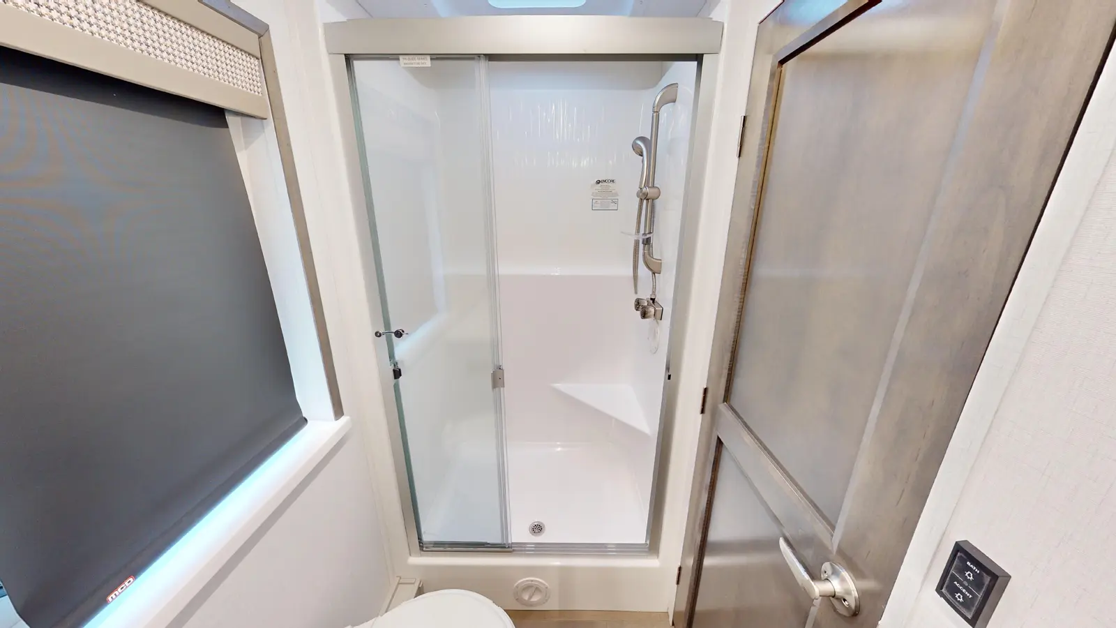 The Georgetown 36K7 by Forest River is designed for family comfort with two full baths and bunks. The kitchen features a farmhouse sink, 3-burner cooktop, microwave, and residential refrigerator. Enjoy entertainment in the theater seats across from a TV. The mid-ship full bath is across from the bunk beds. The bedroom offers a king bed and optional washer/dryer, plus a full master bath. The cab features swivel captain seats, a table, and a power overhead bunk.