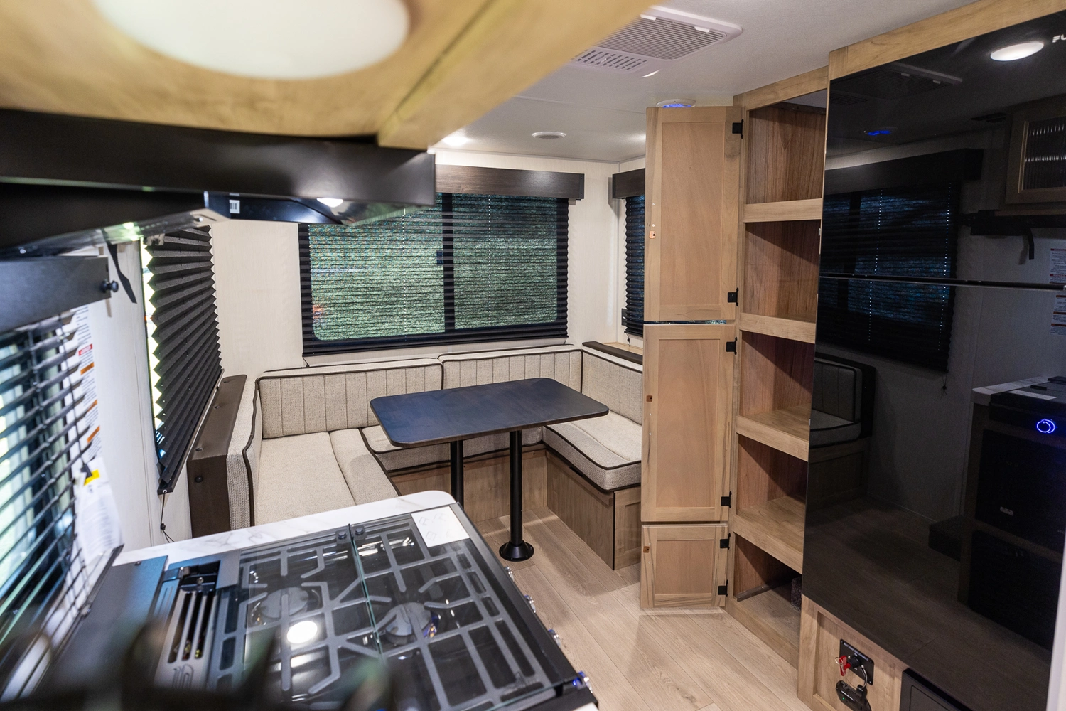 The Grey Wolf 20RDSE by Forest River is a stylish and functional travel trailer, perfect for couples seeking a compact and luxurious camping experience. Its open-concept design, with an extra-large U-shaped dinette and a huge rear window, creates a spacious and inviting atmosphere. The modern kitchen, full bathroom, walk-around queen bed, and ample storage space provide all the comforts of home. Experience the perfect blend of style, comfort, and convenience with the Grey Wolf 20RDSE.
