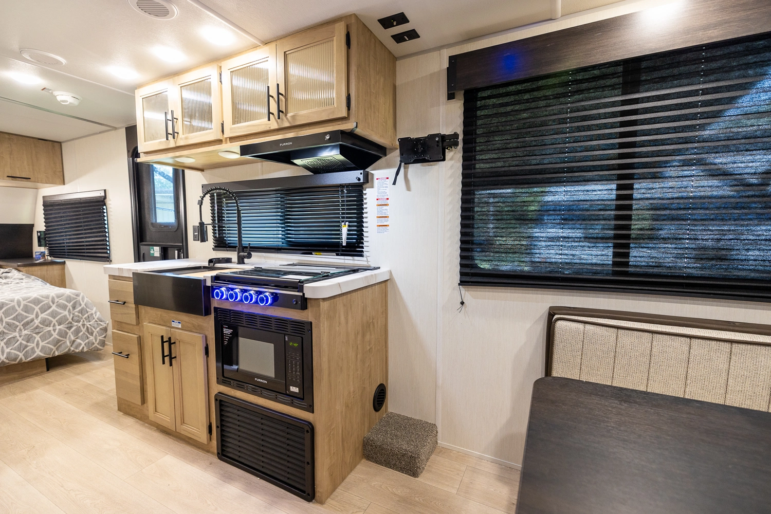 • Cherokee Black Label Grey Wolf (Deep Tinted Frameless Automotive Glass Windows, High Gloss Gel Coat Exterior Sidewalls, Multicolor Reading Lights, Pillowtop Mattress Upgrade, Power Tongue Jack, Pull Out Sprayer Faucet, Solid Surface Countertops, Thermo Foil Arctic Insulation)