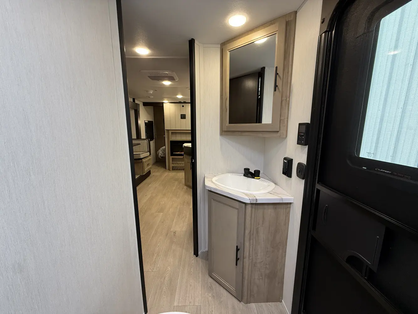 • Blackout Glass, Safety Slam, Friction Hinge Entry Door with Window and Shade Prep (N/A on LP models)