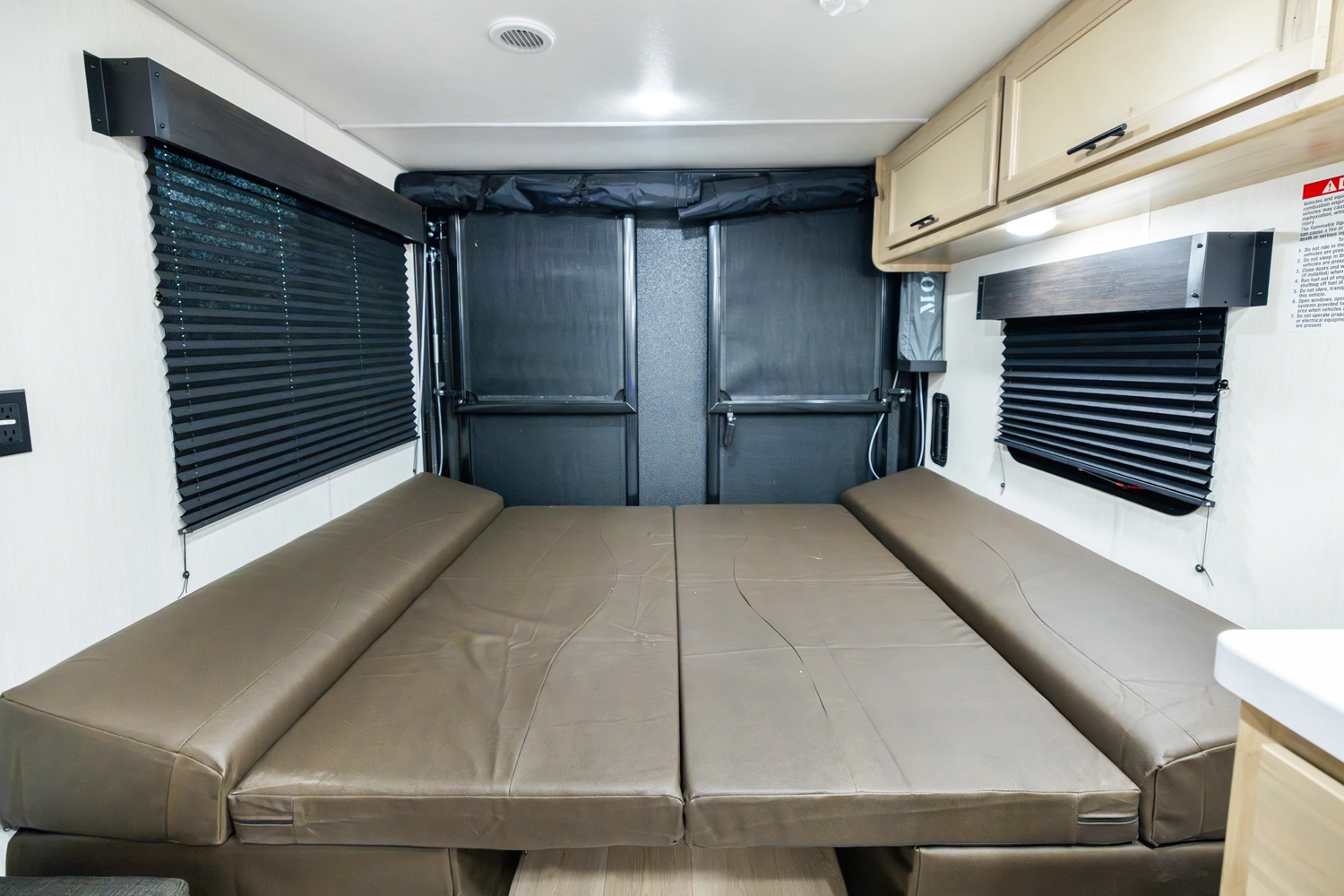 • Blackout Glass, Safety Slam, Friction Hinge Entry Door with Window and Shade Prep (N/A on LP models)
