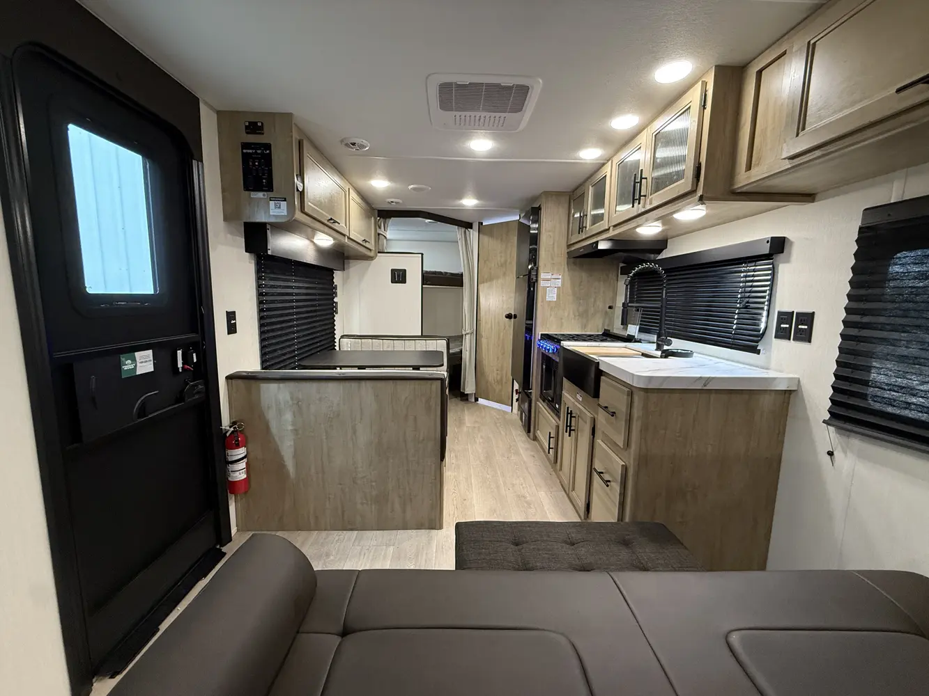 • Cherokee Black Label Grey Wolf (Deep Tinted Frameless Automotive Glass Windows, High Gloss Gel Coat Exterior Sidewalls, Multicolor Reading Lights, Pillowtop Mattress Upgrade, Power Tongue Jack, Pull Out Sprayer Faucet, Solid Surface Countertops, Thermo Foil Arctic Insulation)