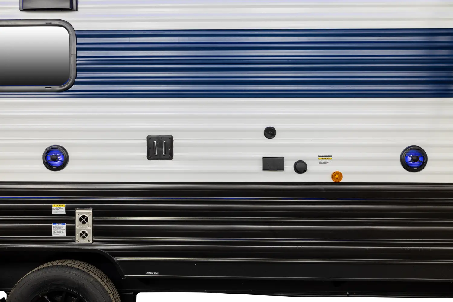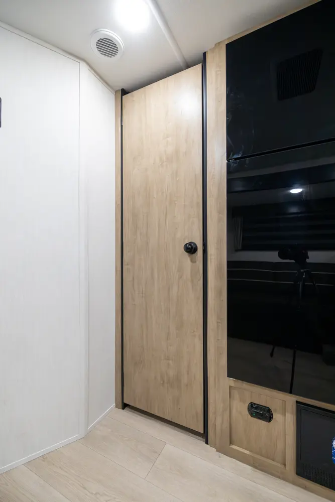 • Blackout Glass, Safety Slam, Friction Hinge Entry Door with Window and Shade Prep (N/A on LP models)