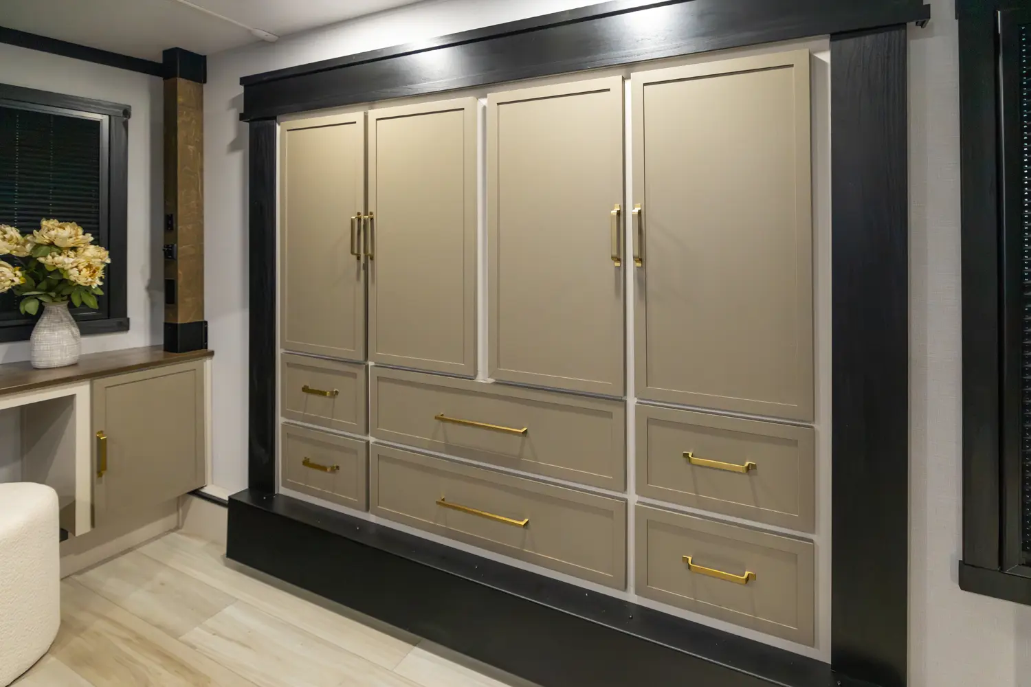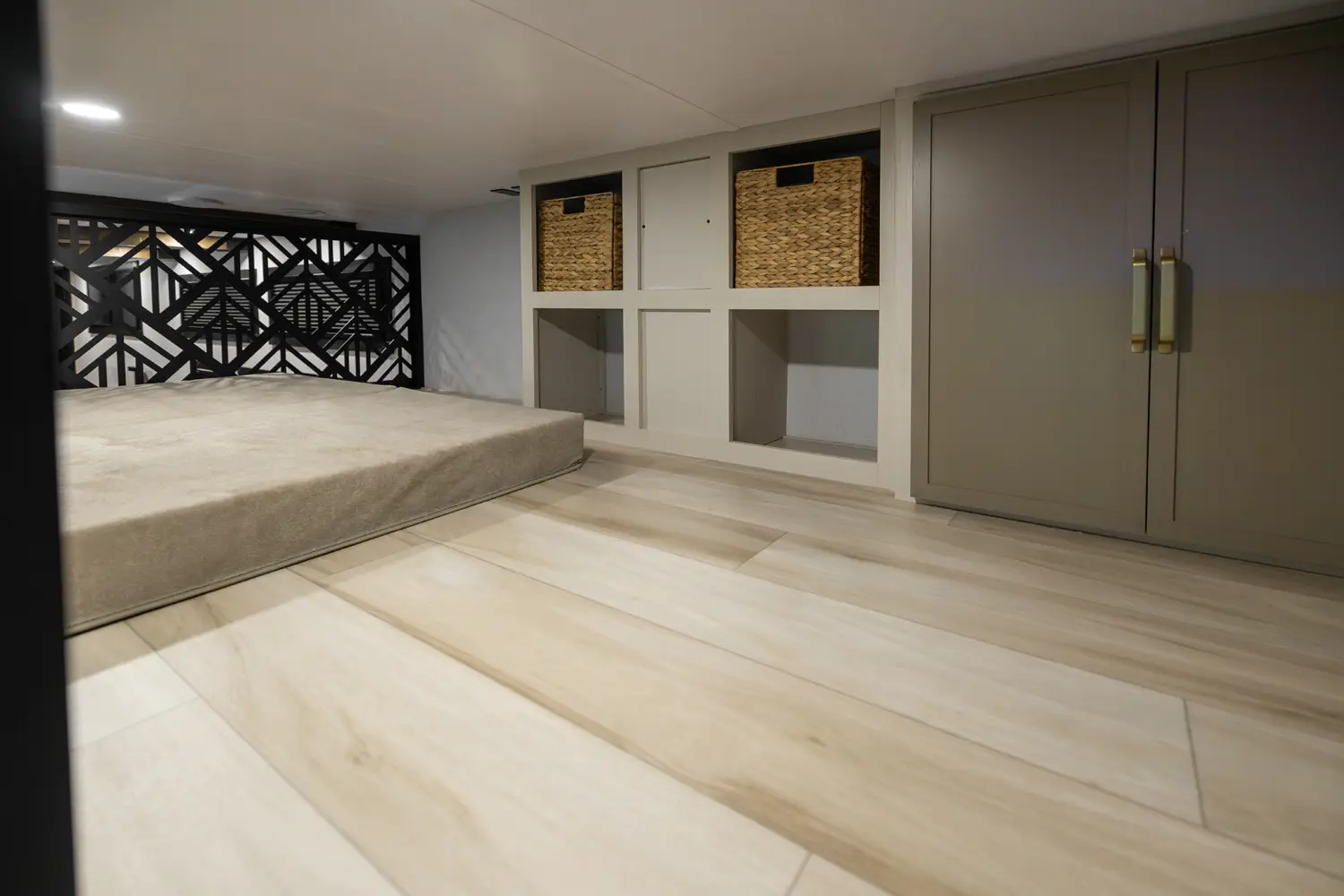The ROOST43 provides a new segment to the RV market with a combination of a destination trailer in fifth wheel form. This creates the opportunity to move from locations easier than bumper pulling and provides the most square footage in this segment of RVs (530 Sq.Ft. compared to 399 Sq.Ft.). The ROOST43 is feature packed with residential style kitchen appliances, HUGE rear den, two lofts, bath and a half, laundry room, and an elegant interior design. The ROOST43 is will set a new era for RVing.