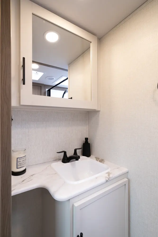 • 110 Outlet & 12V Charging Ports Beside Bed