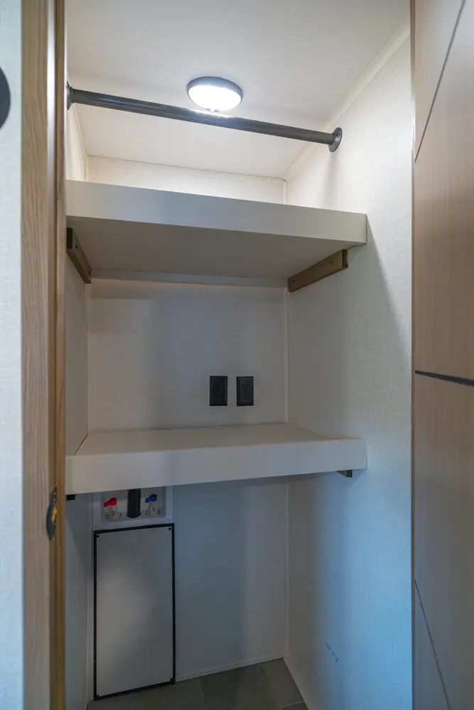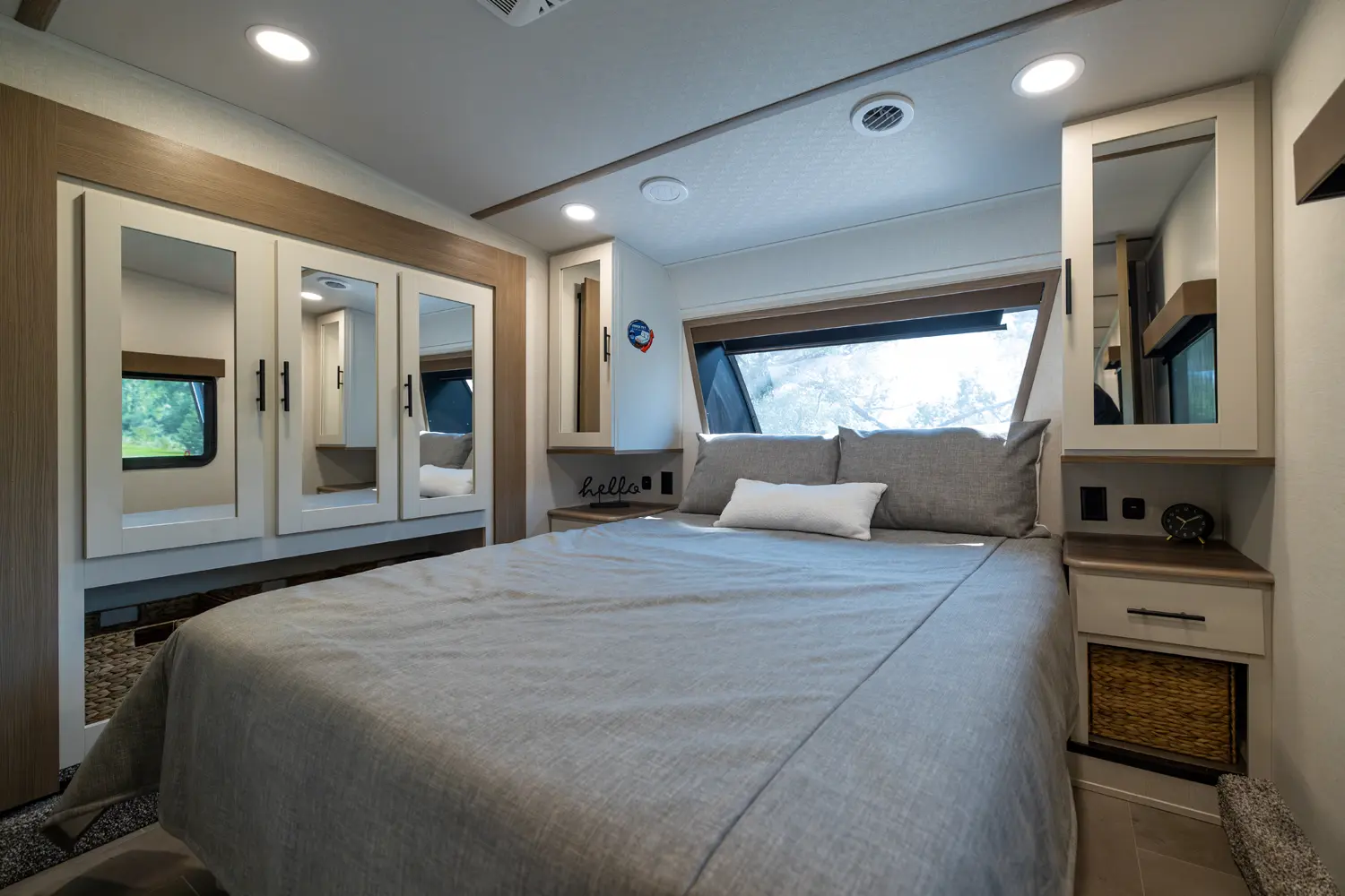 • 110 Outlet & 12V Charging Ports Beside Bed