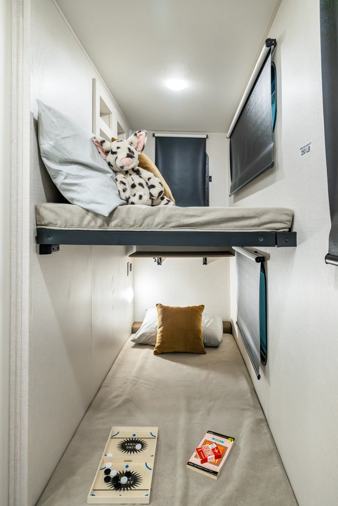 • 110 Outlet & 12V Charging Ports Beside Bed