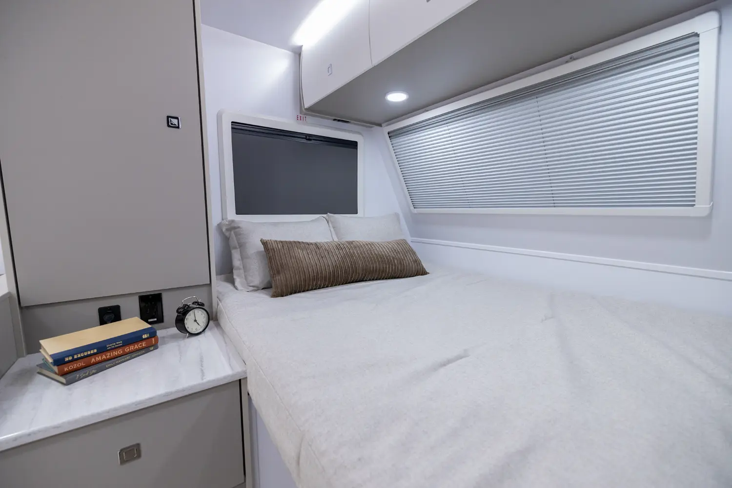 Bringing your mother-in-law on camping adventures is easier than ever with this floorplan! It features a full-size queen, 2 bunks, and a 4-person dinette that converts into an extra bed, ensuring comfortable sleeping for your family. The oversized passthrough storage area and 24 cabinets provide ample space for all your belongings. With the robust solar system, you can go off-grid and operate all trailer components.