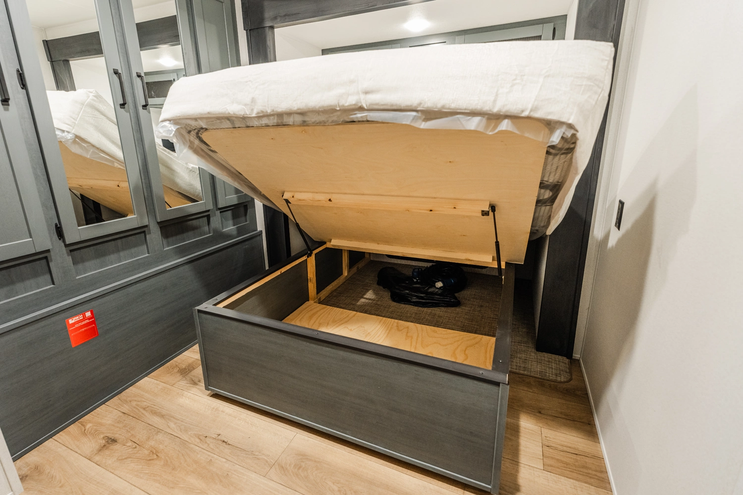 This bunk house travel trailer supplies you a great deal of space in the front bedroom. With a slide out and a large closet for all of your clothes, it will feel like your bedroom at home. The bunk house in the rear provides space for all guests to be comfortable and to make things a cut above, this floor plan provides two bathrooms. Furthermore, the exterior mini camp kitchen features a fridge and a griddle for those of you who like to cook in nature.