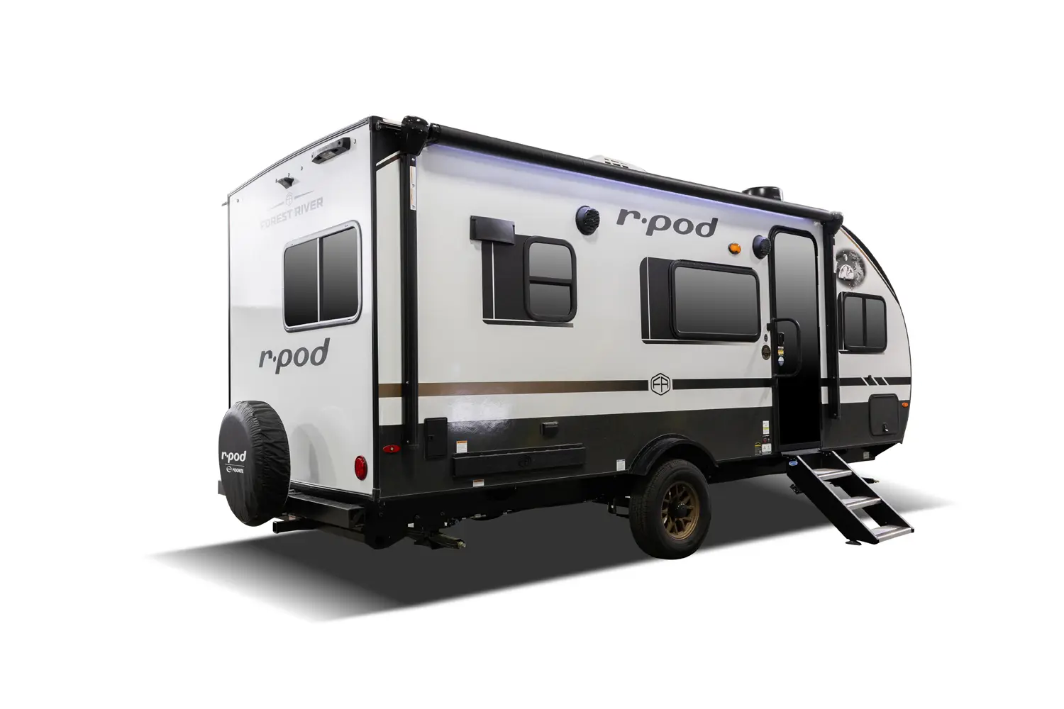 The RP-185 delivers a perfect balance of lightweight design and spacious comfort. Inside, you’ll find a roomy rear bath, well-equipped kitchen, and inviting dinette that converts for sleeping space. A unique bar top with a flip-up window creates an open-air feel, perfect for serving or relaxing outside. Modern finishes and clever storage complete this travel-ready design.