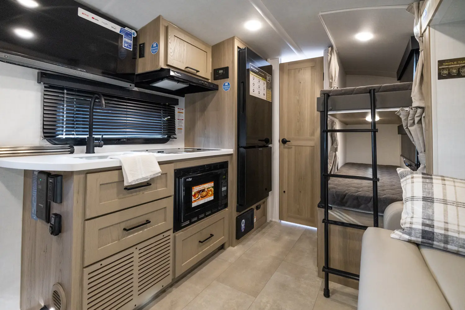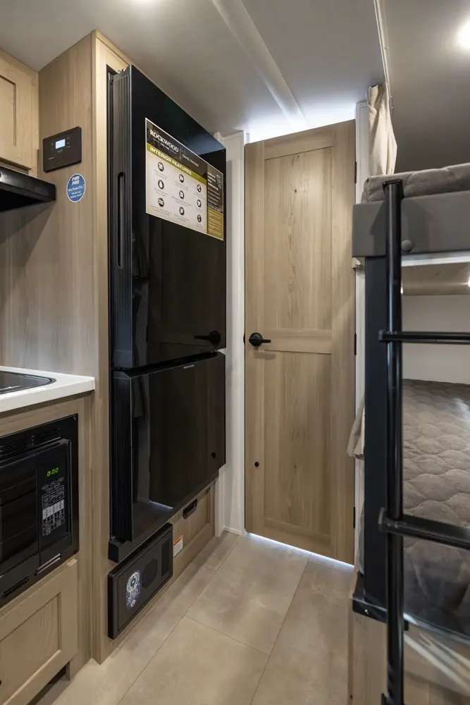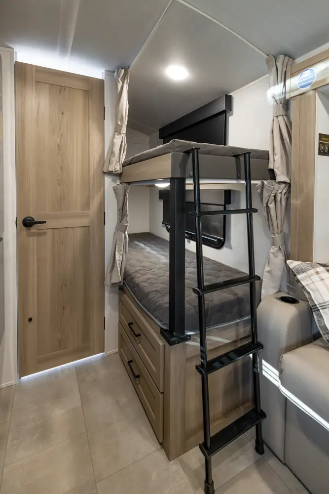The Rockwood Geo Pro 20BHT is a compact bunkhouse packed with smart features! It’s our second Geo Pro with a dual axle setup, giving you improved towing stability and durability on the road. And just over 21 feet long and around 4,000 lbs. It’s easy to tow while still offering comfortable sleeping space, a functional kitchen, and modern off grid features!