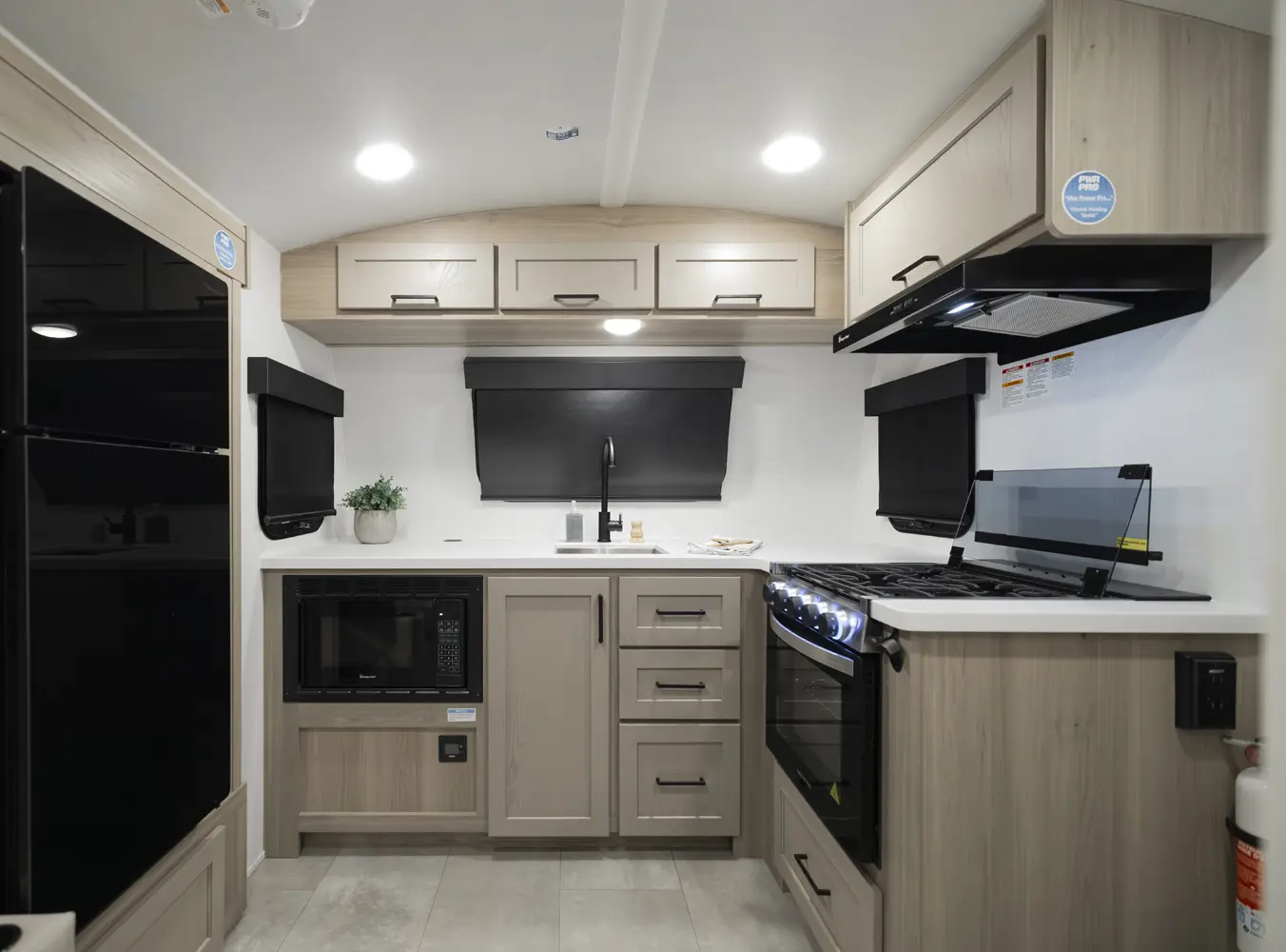 The 20FK is a compact trailer packed with big features! Our first dual axle Geo Pro gives you improved stability and towing confidence in a lightweight design. The front kitchen offers excellent counter space while the rear sleeping area and slide-out create a comfortable, open living space. At just over 21 feet, and around 4,200 lbs., the 20FK delivers easy towing with the durability and off grid features that Rockwood is known for.
