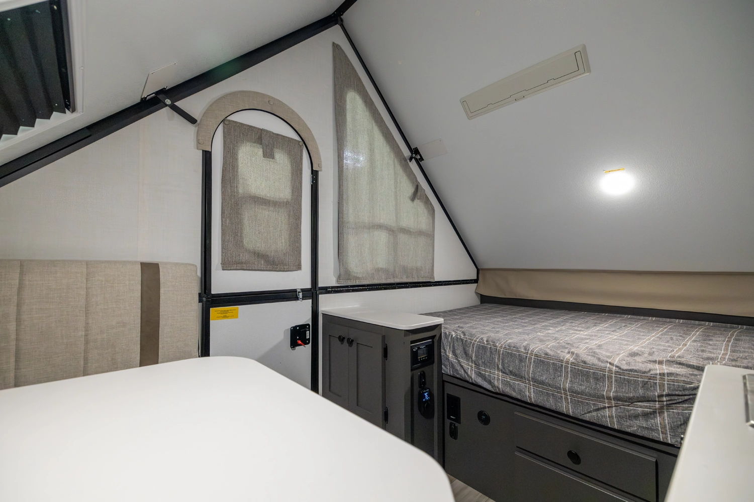 The Rockwood A101LE is a small, traditional A-frame designed for easy, compact camping. It features a rear 54" x 80" bed, a front 33" x 80" dinette, a sink, and a refrigerator in the main area, giving you all the essentials in a compact space. With its efficient layout, it’s perfect for those who want a lightweight, easy-to-tow camper without sacrificing comfort.