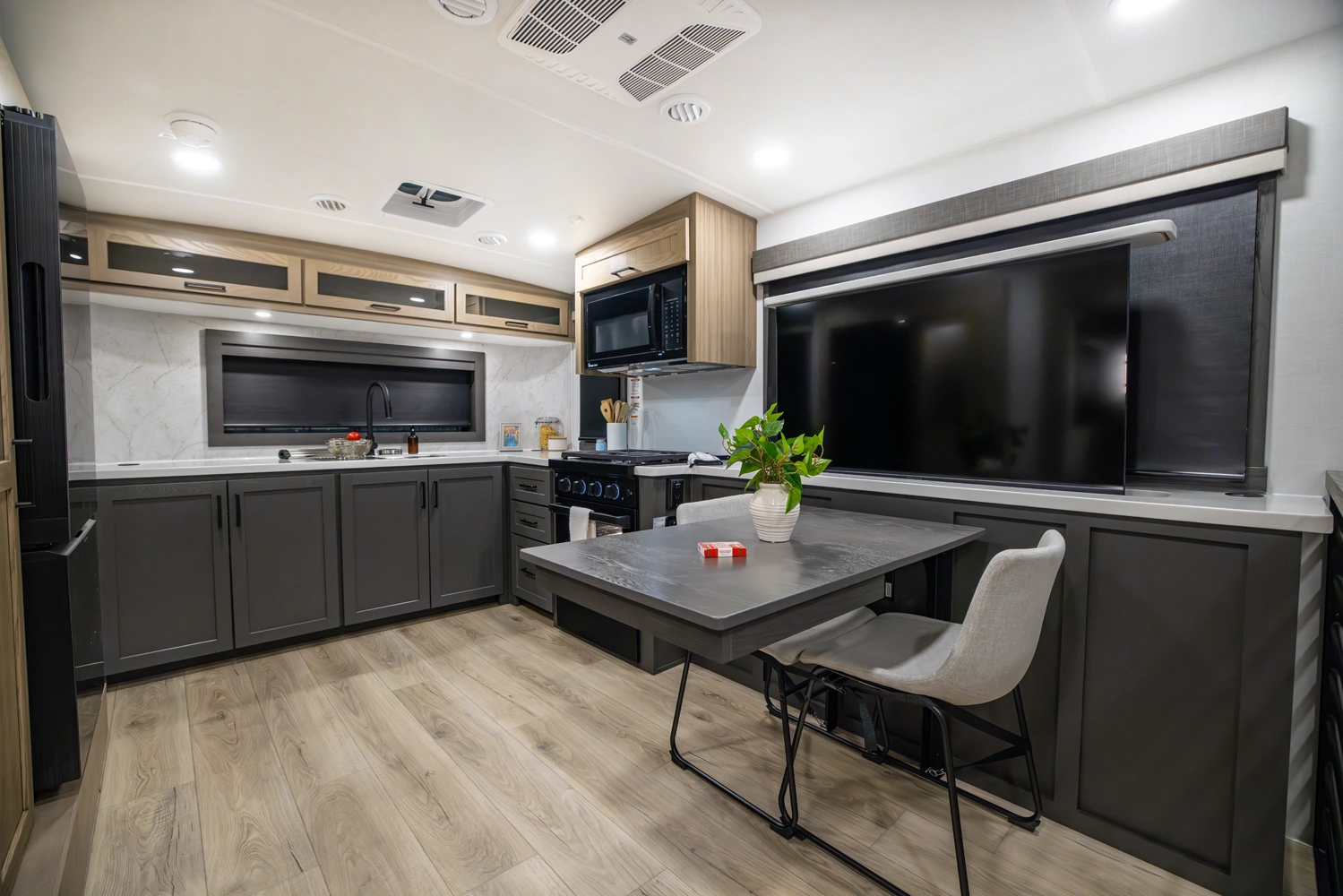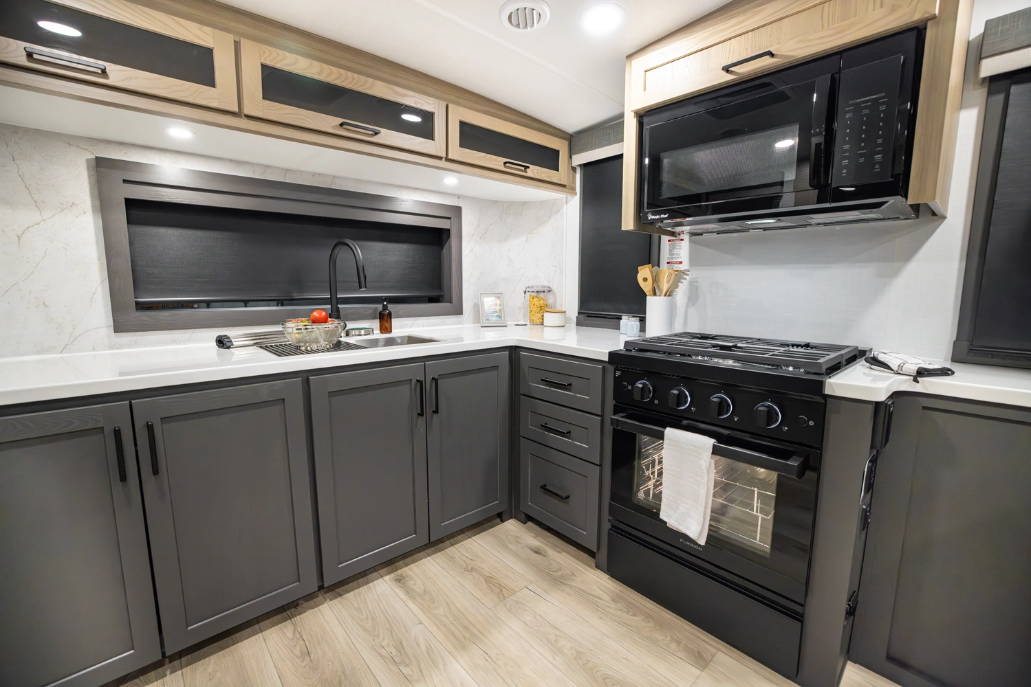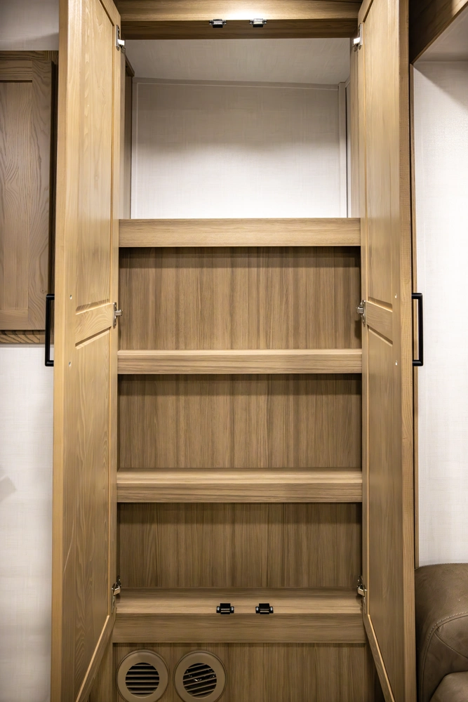 Experience the spacious and smart design of the Rockwood 290SFK fifth wheel. This full profile floor plan features a versatile front kitchen with 86" interior height, abundant counter space and storage, a comfortable living area with theater seating and entertainment center, in a private king size bedroom. With slide outs to expand your space, residential-style comforts throughout, and quality construction, the 290SFK makes every trip relaxing and enjoyable.