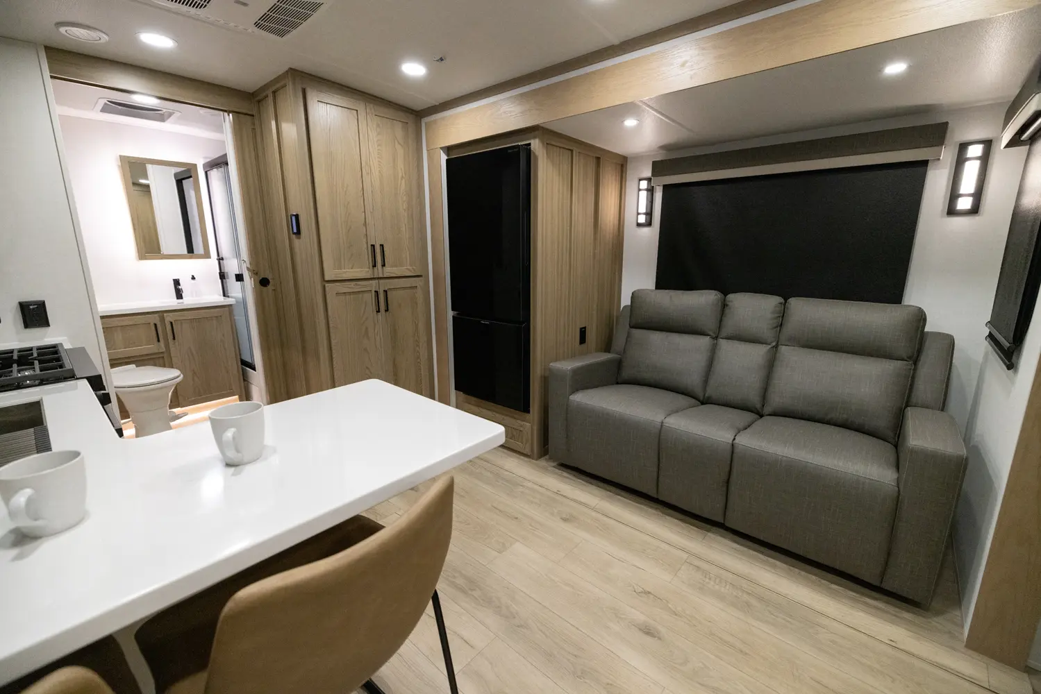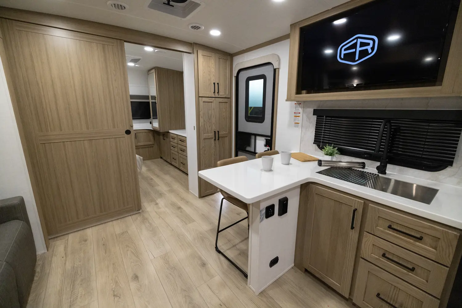 Adding another suites series model to our lineup, this floor plan might just take the bacon. With a giant king bed standard, enough storage for all your snacks, and an outside kitchen that is a chef's dream, this model has it all in a length under 30 ft.