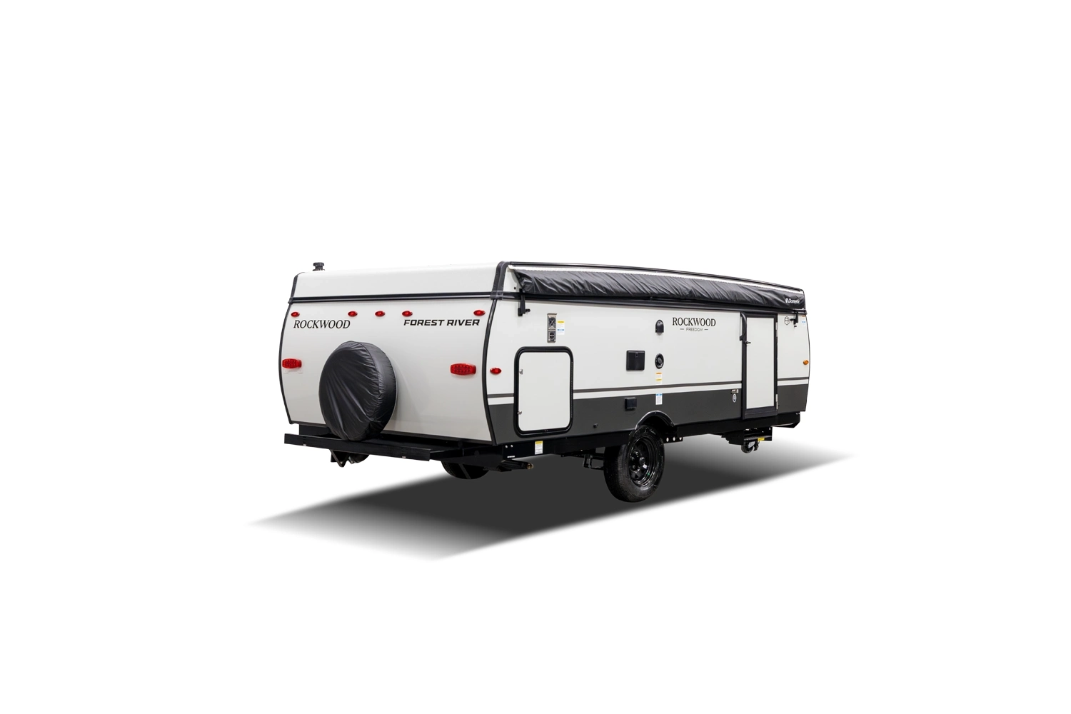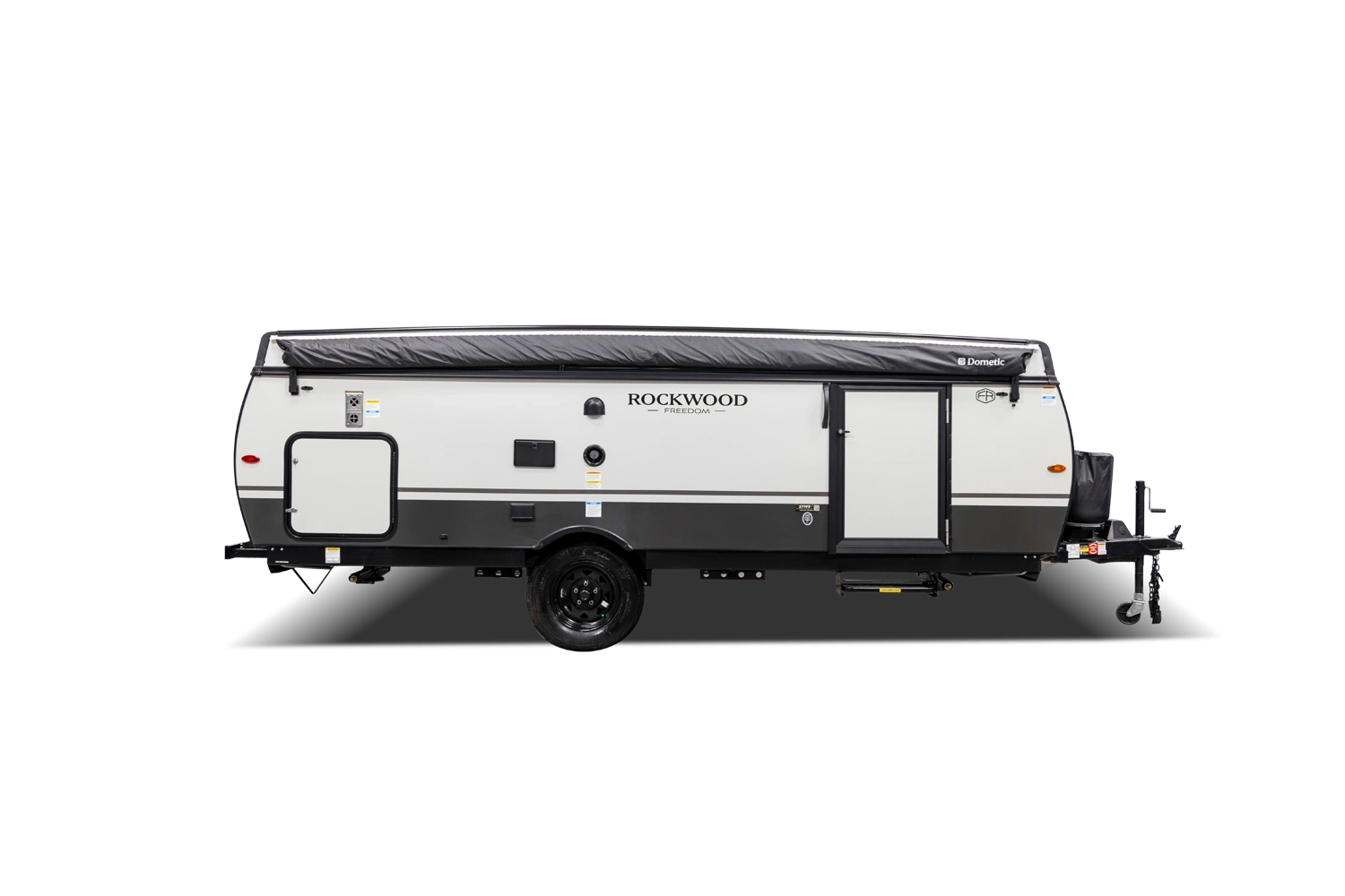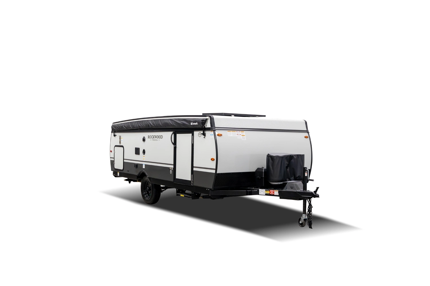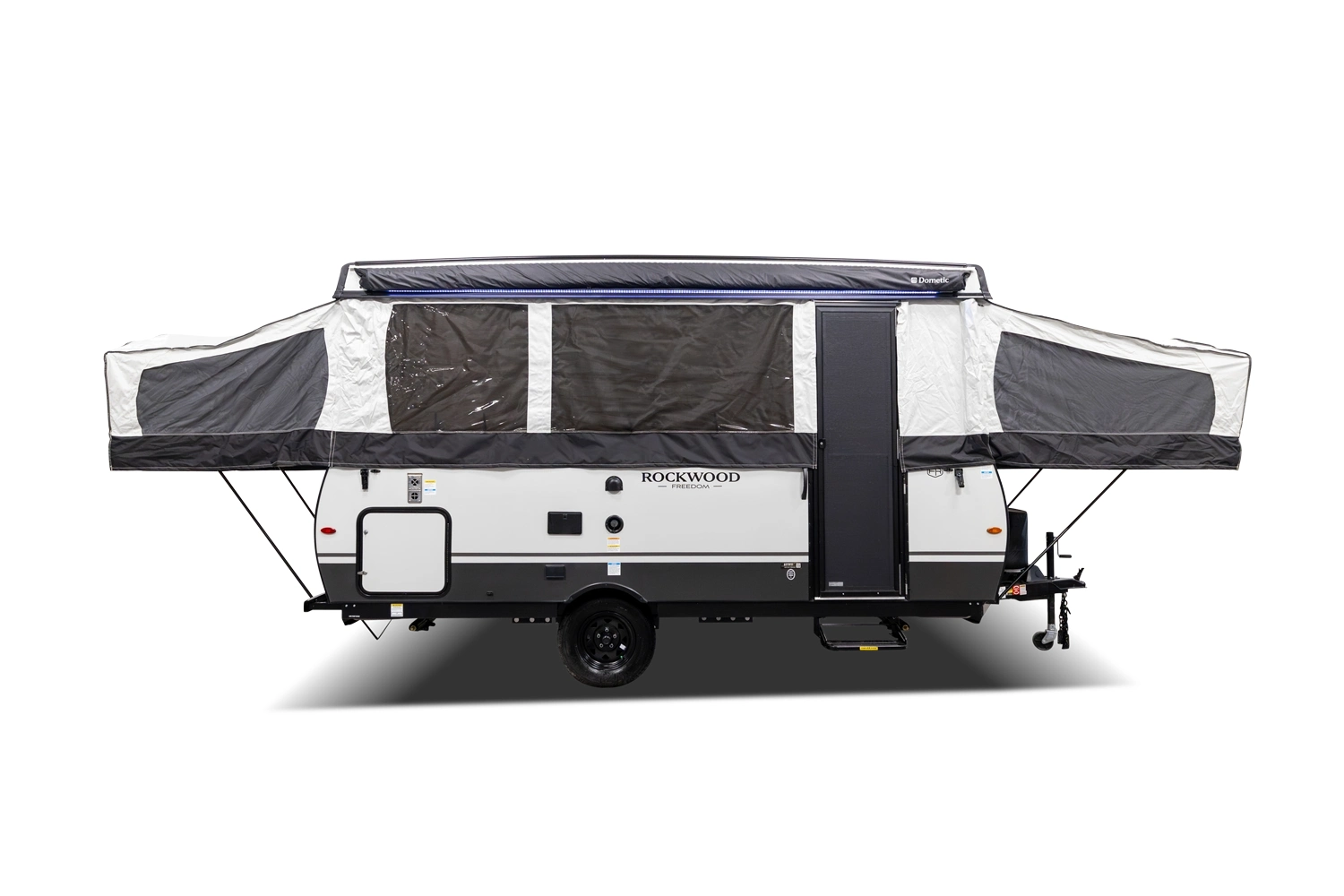 MAXIMIZING YOUR INVESTMENT FOR THE LONG HAUL. Elevate your camping experience with the unmatched quality of the Freedom series line, enhanced by a host of additional features. Imagine the comfort of a Create-a-Breeze fan for optimal ventilation, the convenience of a power roof lift, an outdoor grill for culinary adventures, four stabilizer jacks for stability, and the warm embrace of brilliant LED awning lights that gracefully guide you back to your camper as the sun sets. Embrace the luxurious side of camping with your Rockwood tent camper, where 'roughing it' becomes a thing of the past.