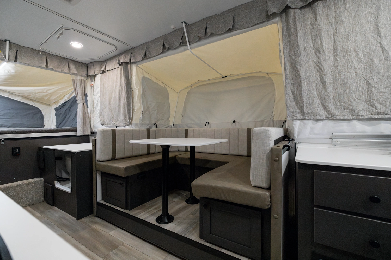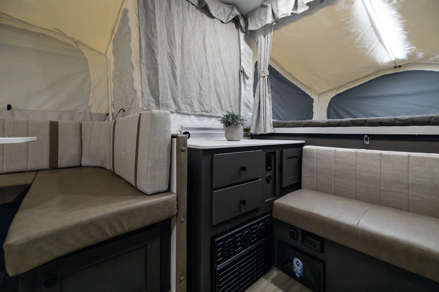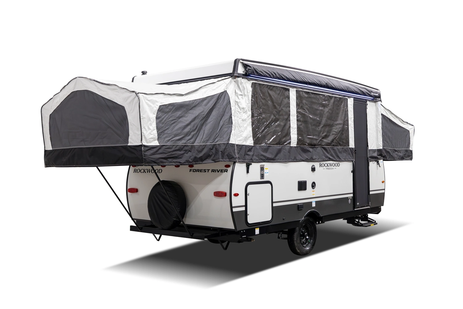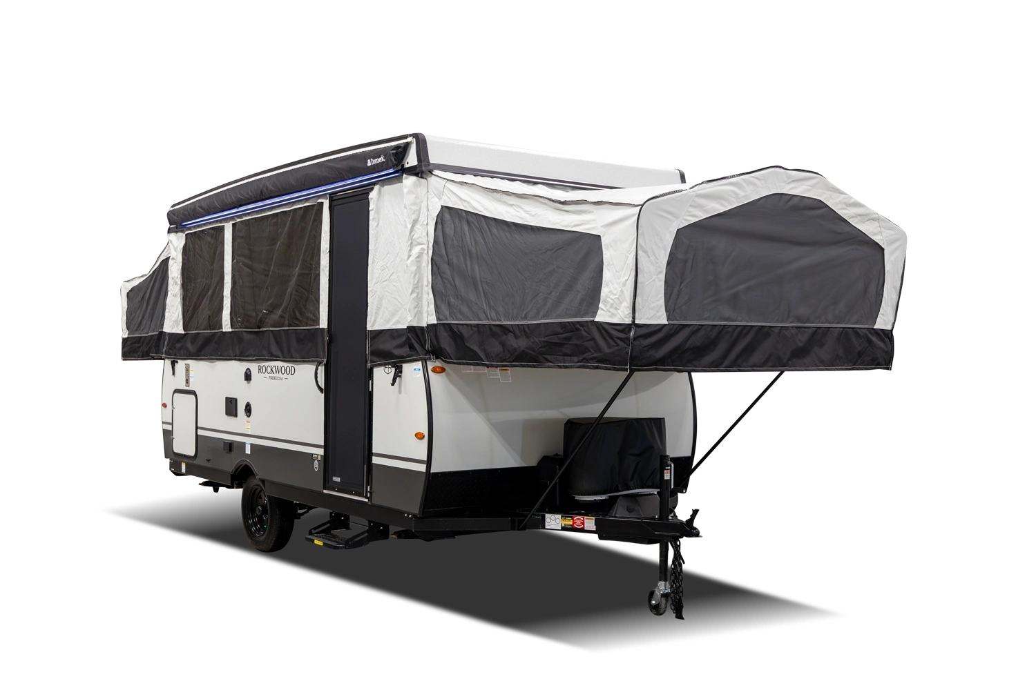 MAXIMIZING YOUR INVESTMENT FOR THE LONG HAUL. Elevate your camping experience with the unmatched quality of the Freedom series line, enhanced by a host of additional features. Imagine the comfort of a Create-a-Breeze fan for optimal ventilation, the convenience of a power roof lift, an outdoor grill for culinary adventures, four stabilizer jacks for stability, and the warm embrace of brilliant LED awning lights that gracefully guide you back to your camper as the sun sets. Embrace the luxurious side of camping with your Rockwood tent camper, where 'roughing it' becomes a thing of the past.