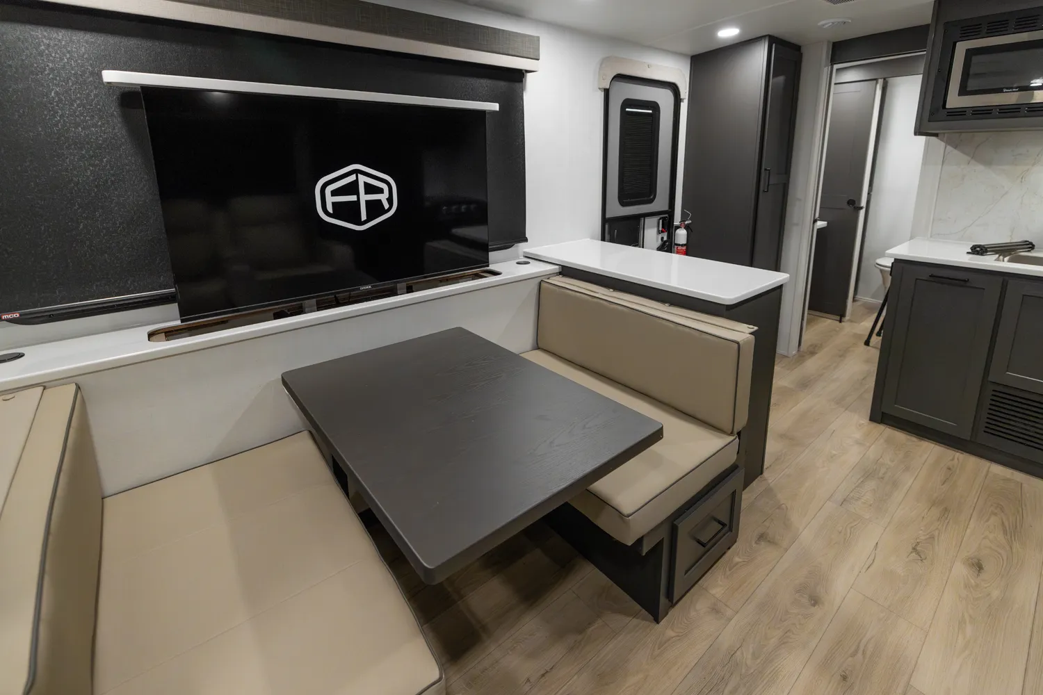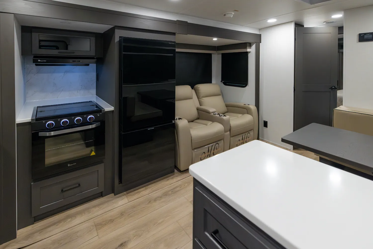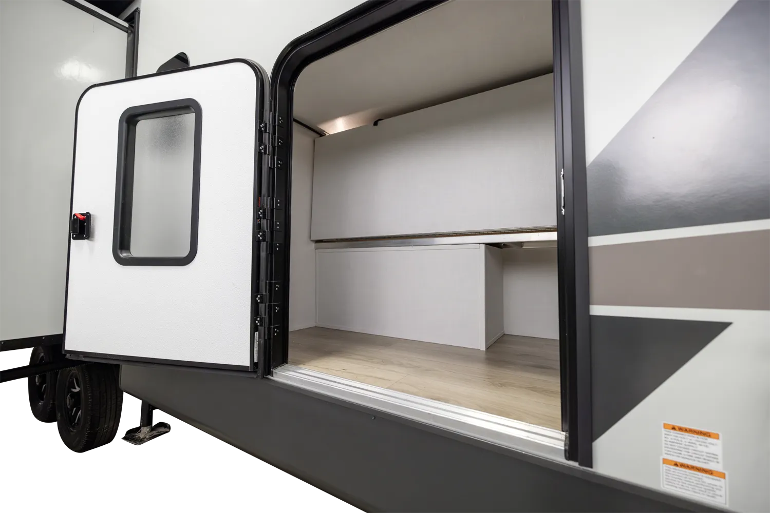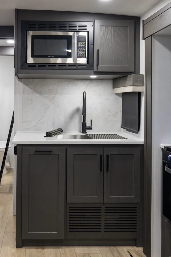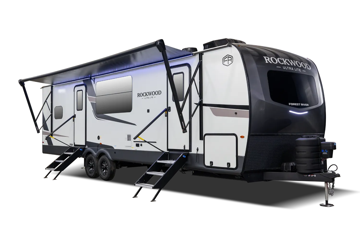 • Platinum Package: Auto Leveling, Frameless Windows, 1800W Inverter, MORryde Strut Assist Entry Step, Dual 30 LP Tanks