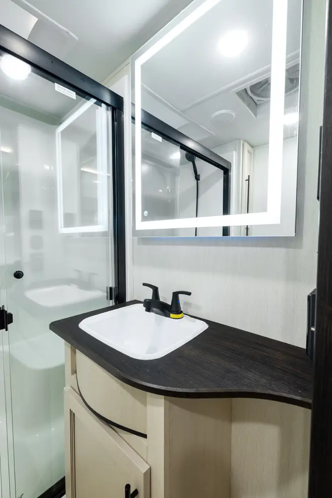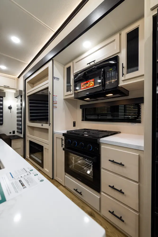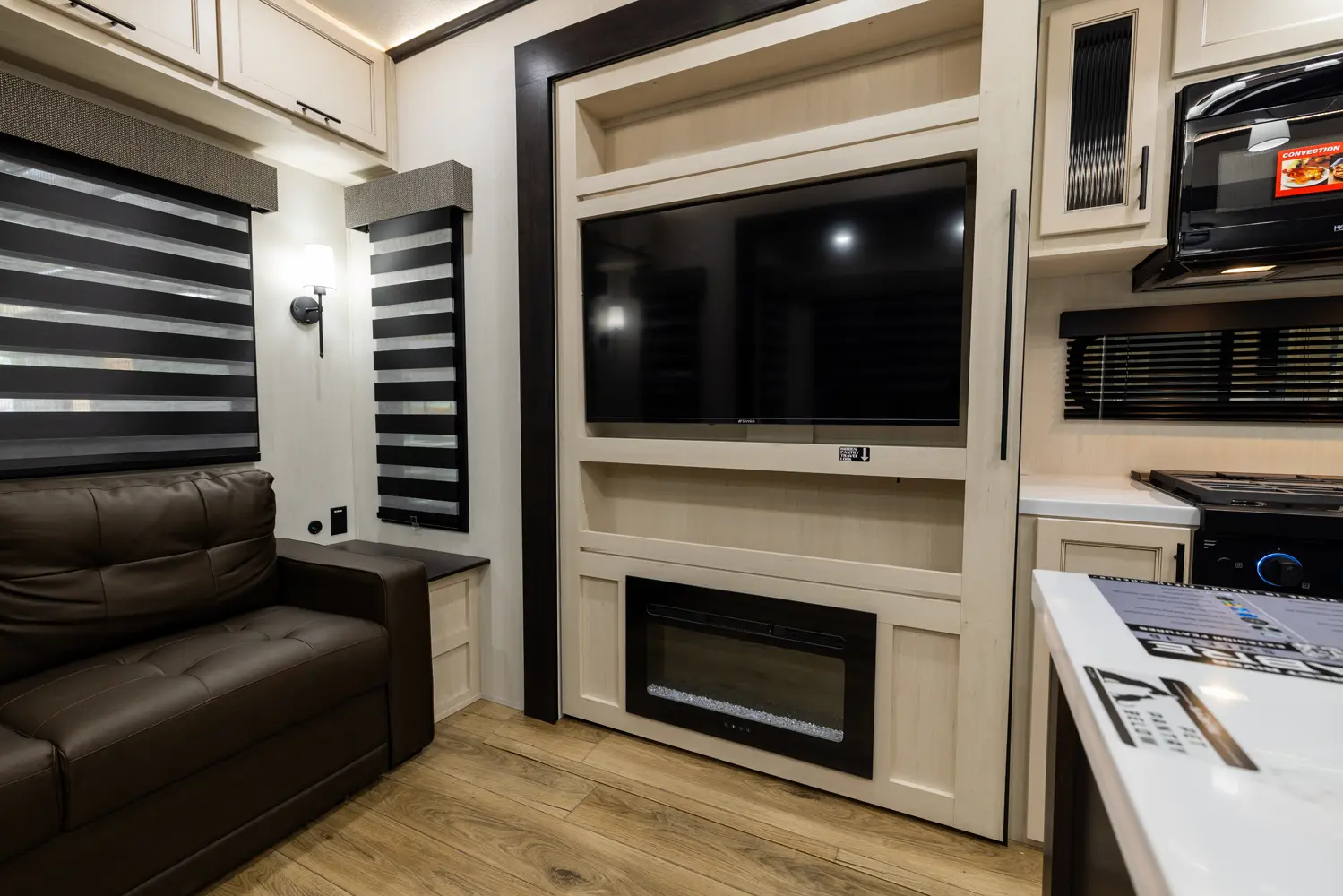 Experience the perfect blend of space and style with the Sabre 32GKS by Forest River. This 35-foot 5th wheel RV features a stunning rear living room bathed in natural light from large windows, offering breathtaking views of your campsite. The impressive chef’s kitchen is a dream come true, while the spacious main suite provides a serene retreat. Discover the ultimate in RV living with the Sabre 32GKS.