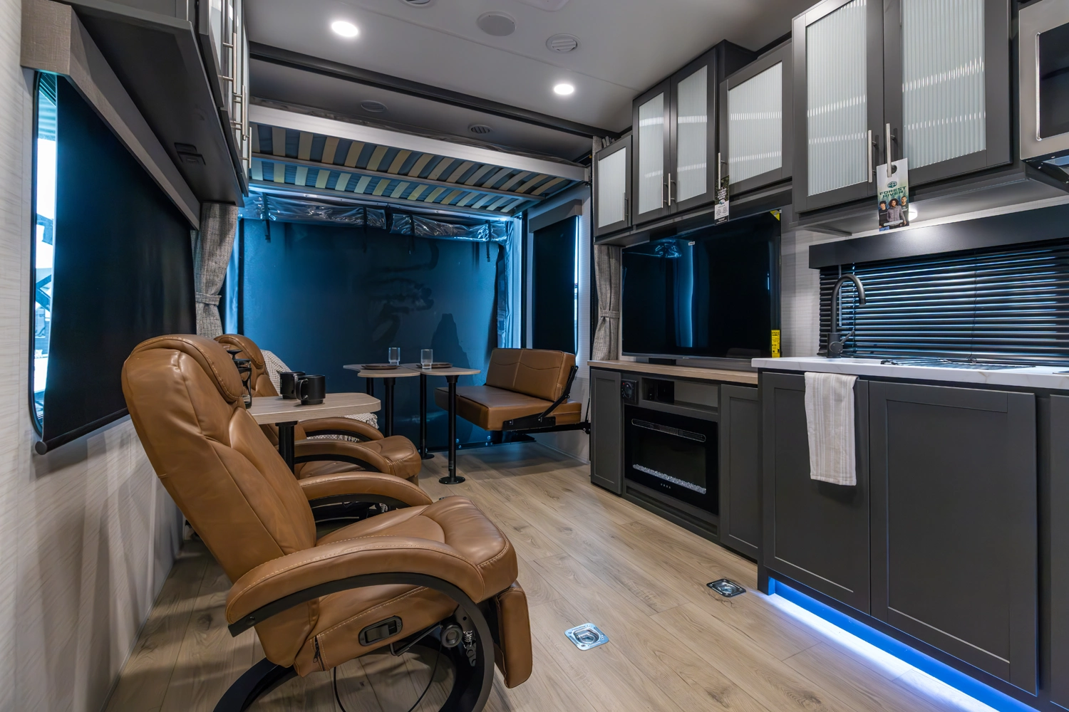 • Power Rear Awning w/LED Light Strip