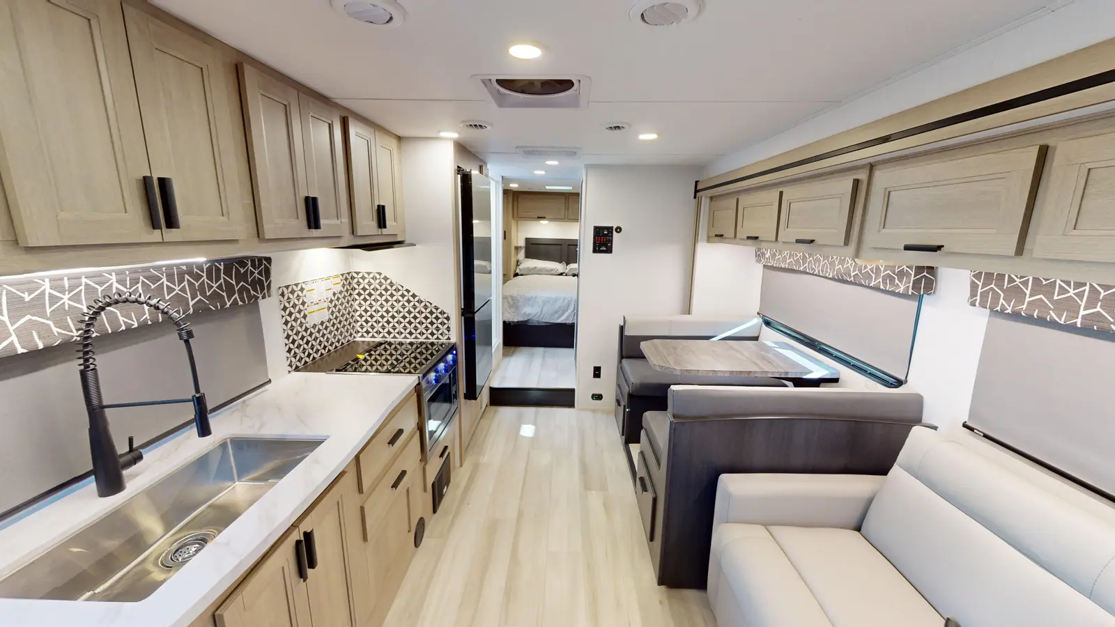 • 15,000 BTU ceiling ducted, ultra quiet roof air with heat pump (N/A w/dual A/C option, N/A on 2150SLE, 2250SLE and 2350LE models)