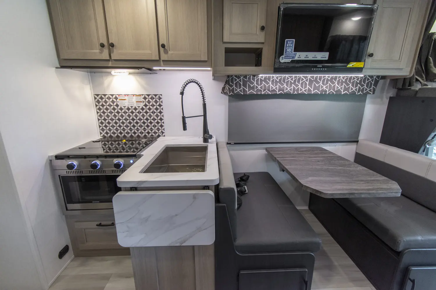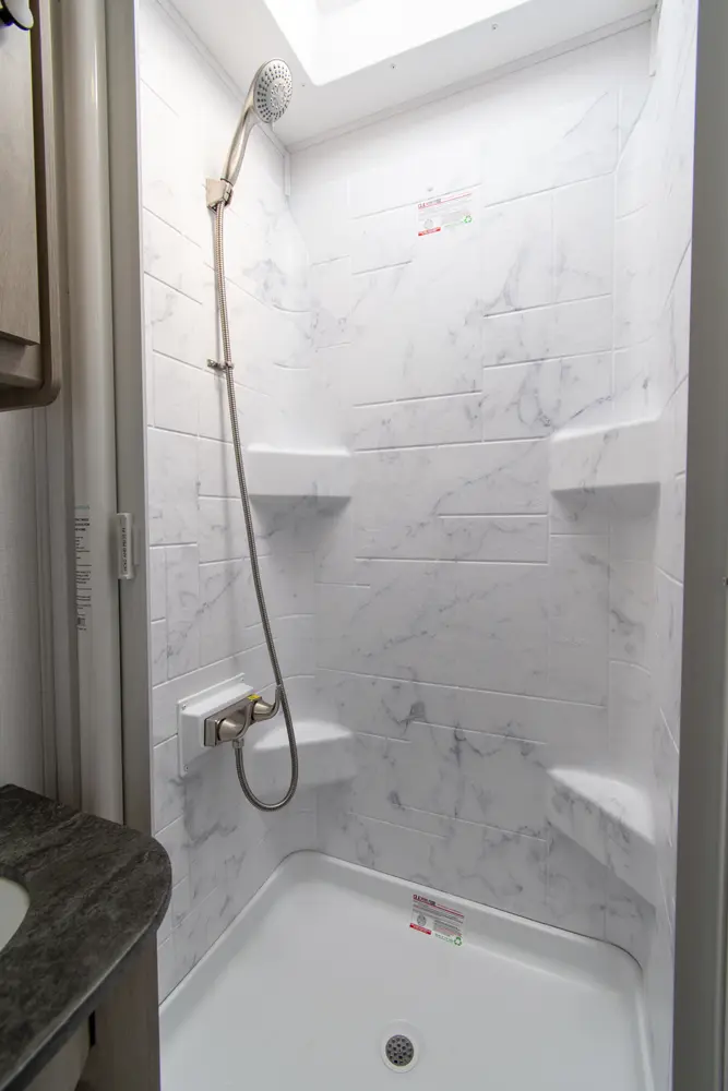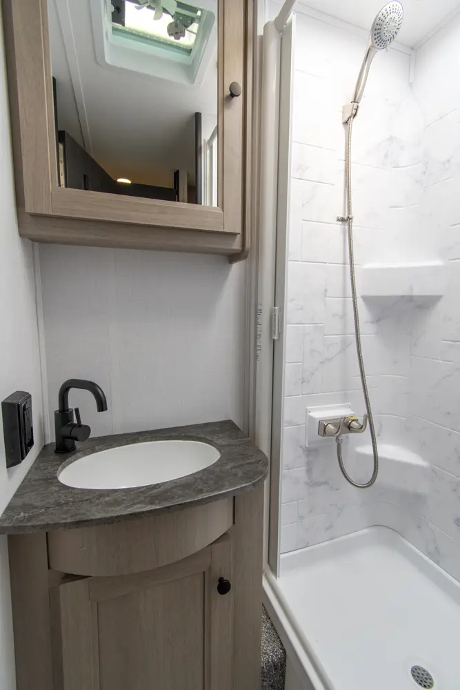• 15,000 BTU ceiling ducted, ultra quiet roof air with heat pump (N/A w/dual A/C option, N/A on 2150SLE, 2250SLE and 2350LE models)